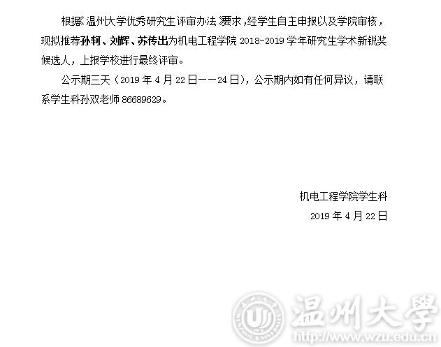 关于成人网 2018-2019学年研究生“学术新锐奖”候选人评选结果公示