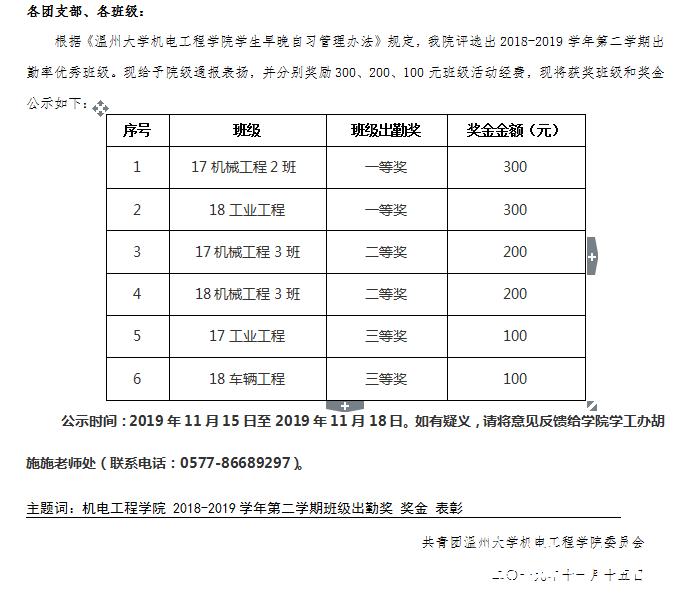 关于成人网 2018-2019学年第二学期出勤奖励的公示