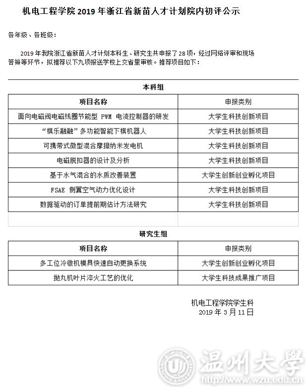成人网 2019年浙江省新苗人才计划院内初评公示