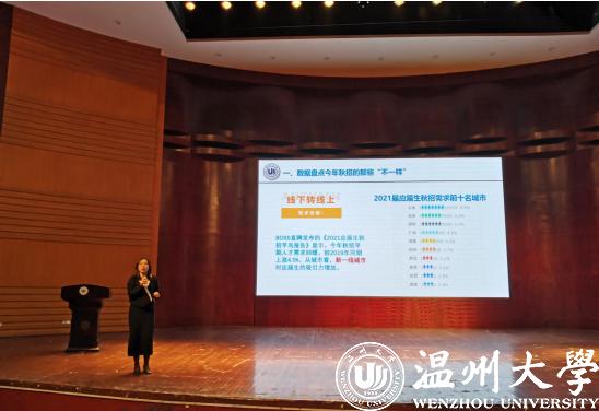 朱秀微老师为我院2021届毕业生解读就业政策及留温政策。她介绍了因疫情导致的今年秋招同往年的区别,分析了当前就业形势,为在场的毕业生进行就业观念指导及学校提供的相关就业资源,并鼓励同学们在面对日趋激烈的就业市场竞争时,保持良好心态,积极采取行动,充分合理地利用学校和学院的资源,找到自身合理的就业定位。