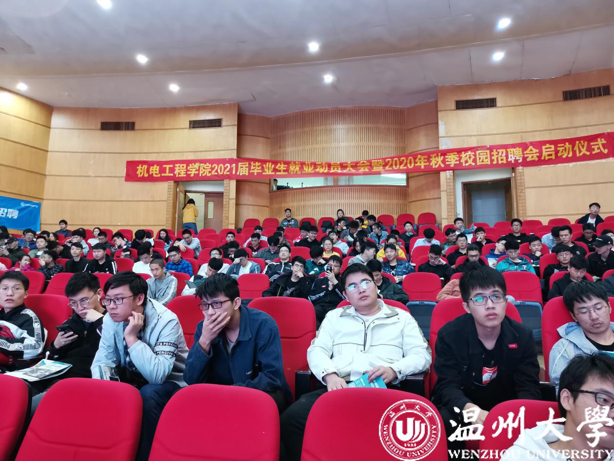 2020年11月4日,成人网 在成人网 南校区音乐厅举行“2021届毕业生就业动员大会暨2020年秋季校园招聘会启动仪式”。学院党委副书记黄玮老师、车辆工程系主任龙江启老师、招就处朱秀微老师、春风动力财务总监郭强先生以及全体辅导员出席本次活动。