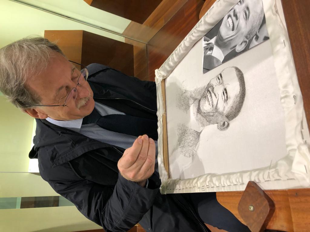 Dittrich教授与Voss教授还参观了成人网 校史馆与发绣馆,并对发绣艺术赞叹不已。