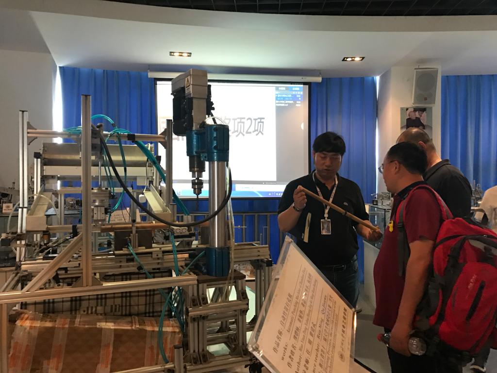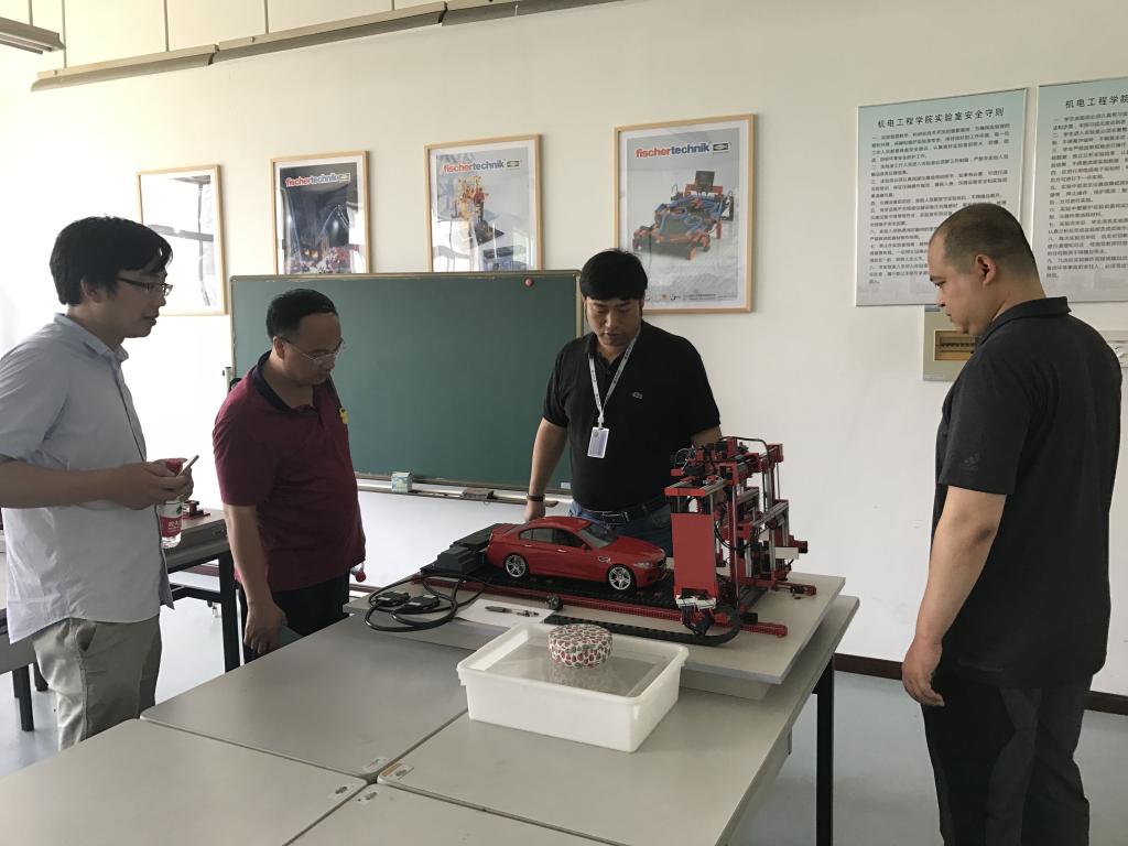 周宏明院长代表学院对汪磊院长一行表示热烈欢迎,在观看学院宣传视频后,大家一起参观了学院控工室、测试技术室、机器人模拟室等实验室以及学生科技成果展示厅。