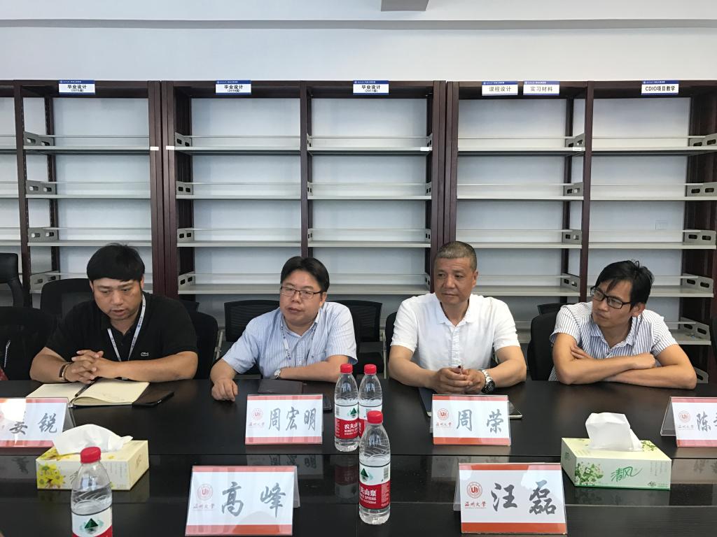 交流会上,学院领导班子分享了学院在发展过程中的优秀经验、办学特色和产业定位。浙江广厦建设职业技术学院信息与控制工程学院院长汪磊、副院长高峰对我院领导的发展思路表示赞赏,并就实验室管理、教师职责以及实验室特色凝练等和与会老师展开热烈讨论。