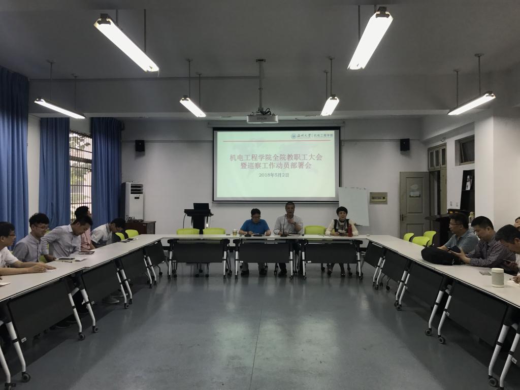 2018年5月2日下午,成人网 在6B201会议室召开全院教职工大会暨巡察工作动员部署会。学院全体教职工参加了会议,会议由学院党总支书记周荣主持。