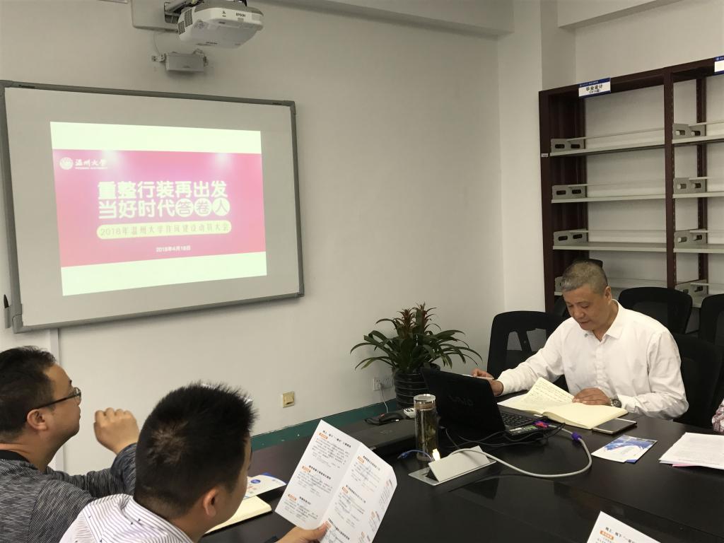 2018年4月23日,成人网 召开中层干部工作会议,传达学习2018年成人网 作风建设动员大会会议精神。学院领导班子成员、各系部、中心、研究院、研究所、各科室负责人及全体行政人员参加学习。学院总支书记周荣主讲。