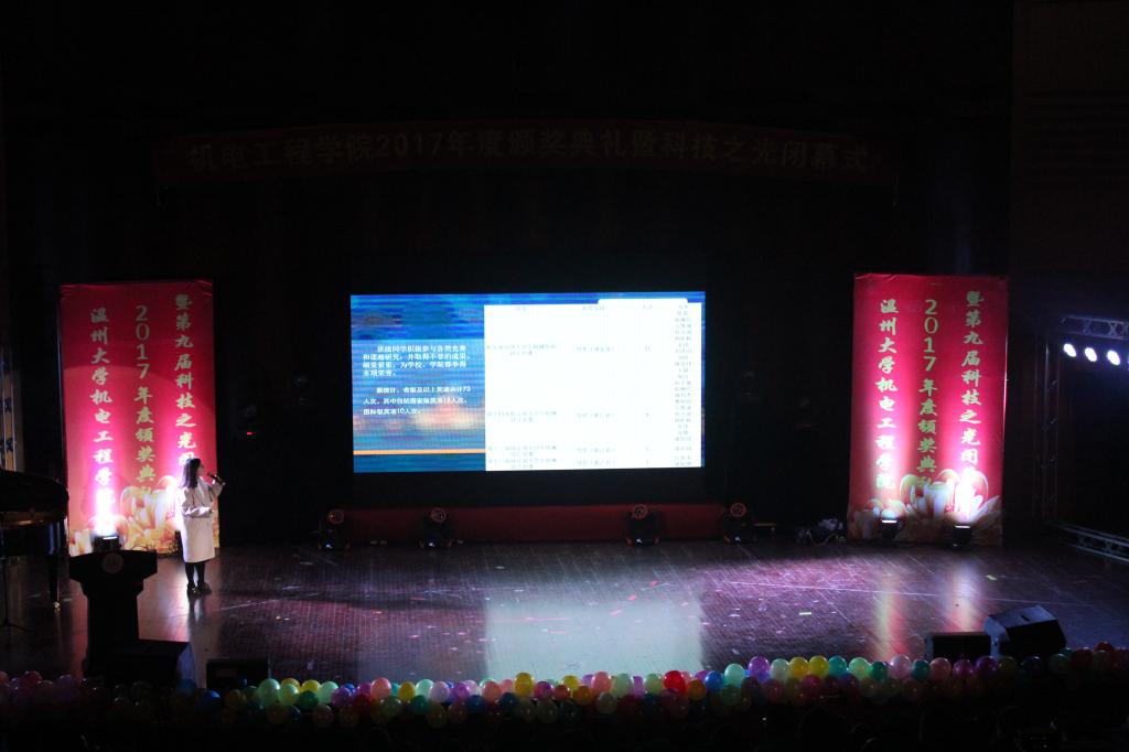2017年12月27日,成人网 2017年度颁奖典礼暨第九届科技之光闭幕式在南校区音乐厅隆重举行,莅临此次活动的有成人网 副校长、党委委员蔡曙光,成人网 团委书记屠霁霞,步青学区党委副书记、副主任张朝辉,学院院长周宏明,学院党总支书记周荣,学院副院长姜锐,学院党总支副书记李密以及各专业、各教研室、各科室的教师代表。同时,大一和大二的全体学生与部分大三学生参与此次活动。