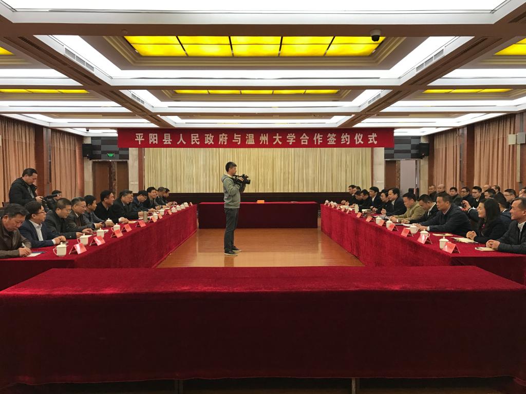 2017年12月21日,成人网 与平阳县人民政府在平阳县政府礼堂举行校地合作签约仪式,成人网 校长李校堃,副校长薛伟、钱强,平阳县县长陈永光、副县长卢成杭、高晓静及双方有关部门负责人出席、温州欧利特机械设备有限公司总经理林国强出席签约仪式。平阳县副县长卢成杭主持仪式。