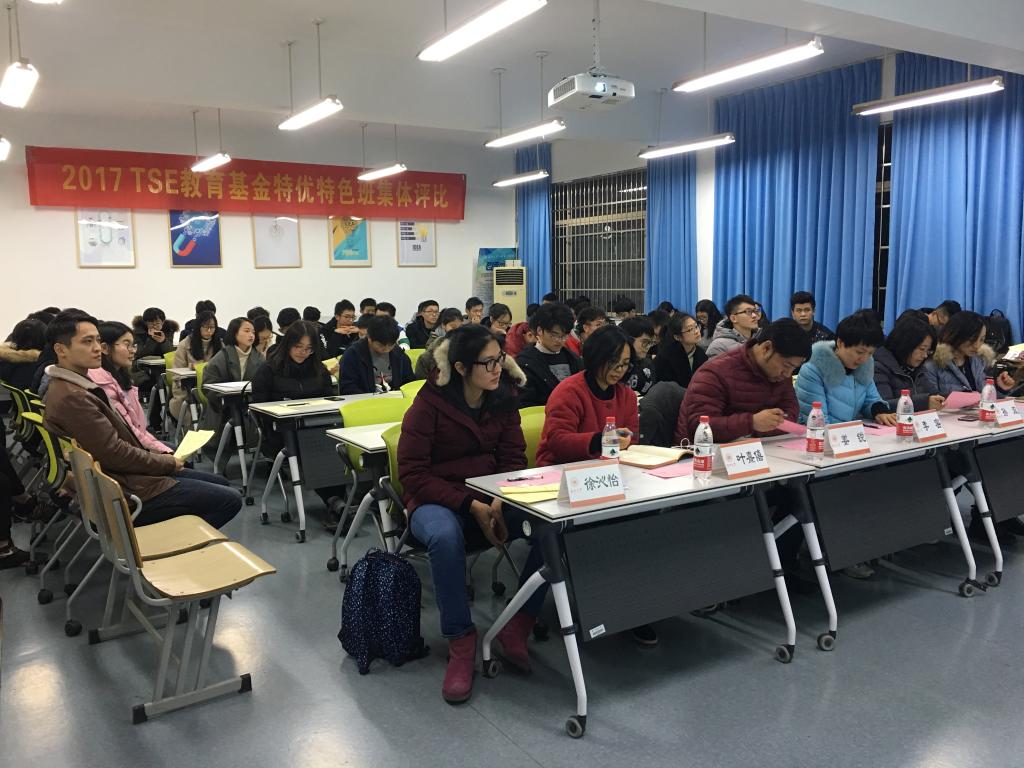 12月19日,成人网 2017年“TSE”教育基金特优特色班集体评比在我院B201会议室隆重召开。我院副院长姜锐,党总支副书记李密,教学科叶熹僖以及学生科孙双、郑妤、徐沁怡等老师担任本次评比大会的教师评委,各年级委员会全体成员、团委学生会主席团、各班级代表担任学生评委。