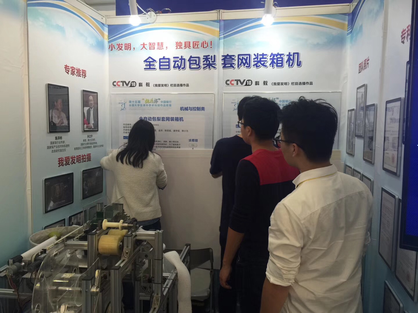11月18日,由共青团中央、中国科协、教育部、中国社科院、全国学联、上海市人民政府主办,上海大学承办的第十五届“挑战杯”全国大学生课外学术科技作品竞赛决赛在上海大学落下帷幕,成人网 申允德、任明、瞿建武等老师指导、刘洪唱、邬佳欣、金泽等学生的参赛作品《全自动包梨套网装箱机》斩获全国二等奖。