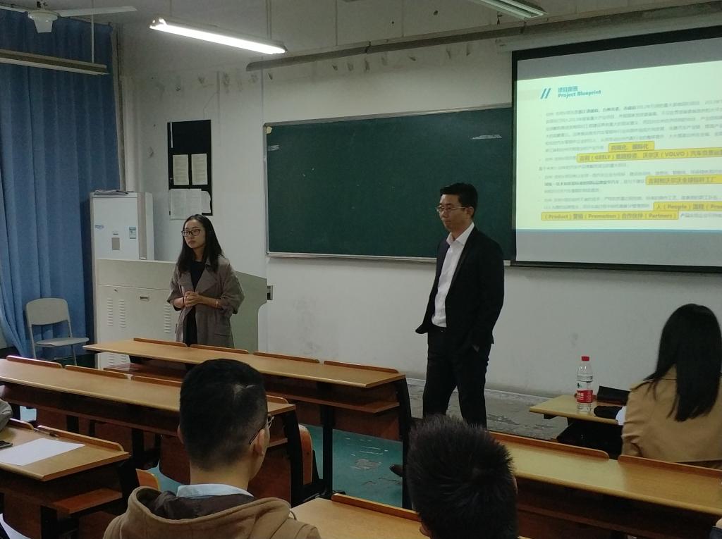 基于同学们对就业形势了解不充分的现状,崔杰经理首先点明了目前汽车行业竞争十分激烈的形势,并告诉同学们,在这种优胜劣汰竞争残酷的大环境下,大家只有不断努力钻研,不断更新领域内的知识体系,不断提高自己的专业技术水平,持续强化自我才能把握就业先机。紧接着,崔经理向同学们具体讲述了吉利汽车及相关制造业的技术研发方向、供给策改革后的销售前景。为了吸引同学的到来,崔经理介绍了公司在台州厂区所具有的优越技术条件与就业环境,在介绍企业的同时崔经理也为大家讲解了国家的相关扶持政策。台下的同学们认真地听着,时不时做些笔记,崔经理也不时地停下讲话,贴心得询问同学们是否存在疑惑,并对同学们提出的问题进行了耐心地解答。在接下来的环节中,崔经理让助理介绍了公司的培训生制度和工作的主要类别。助理特别突出讲解培训生制度为同学们在毕业前或就业起步阶段所提供重要作用,同学们听后兴趣十足。