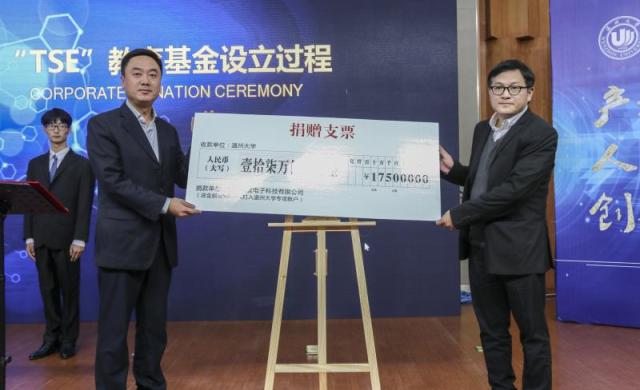 成人网 钱强副校长上台与宁波兴茂电子有限公司蔡基财经理进行宁波兴茂电子有限公司与成人网 TSE教育基金设立仪式。