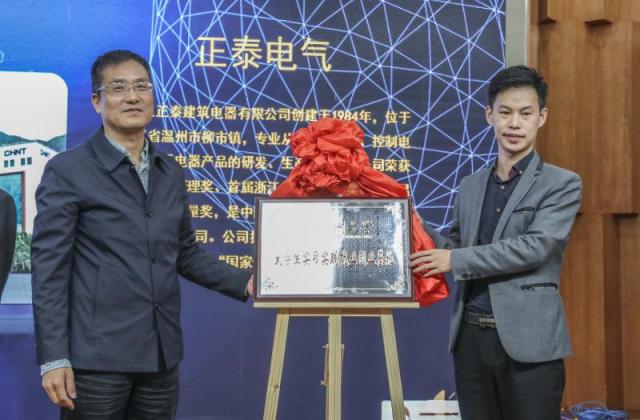 接着成人网 就业处处长周伟国上台与泰利集团、华仪、正泰三家企业进行大学生实践就业实训实习基地签约及授牌仪式。