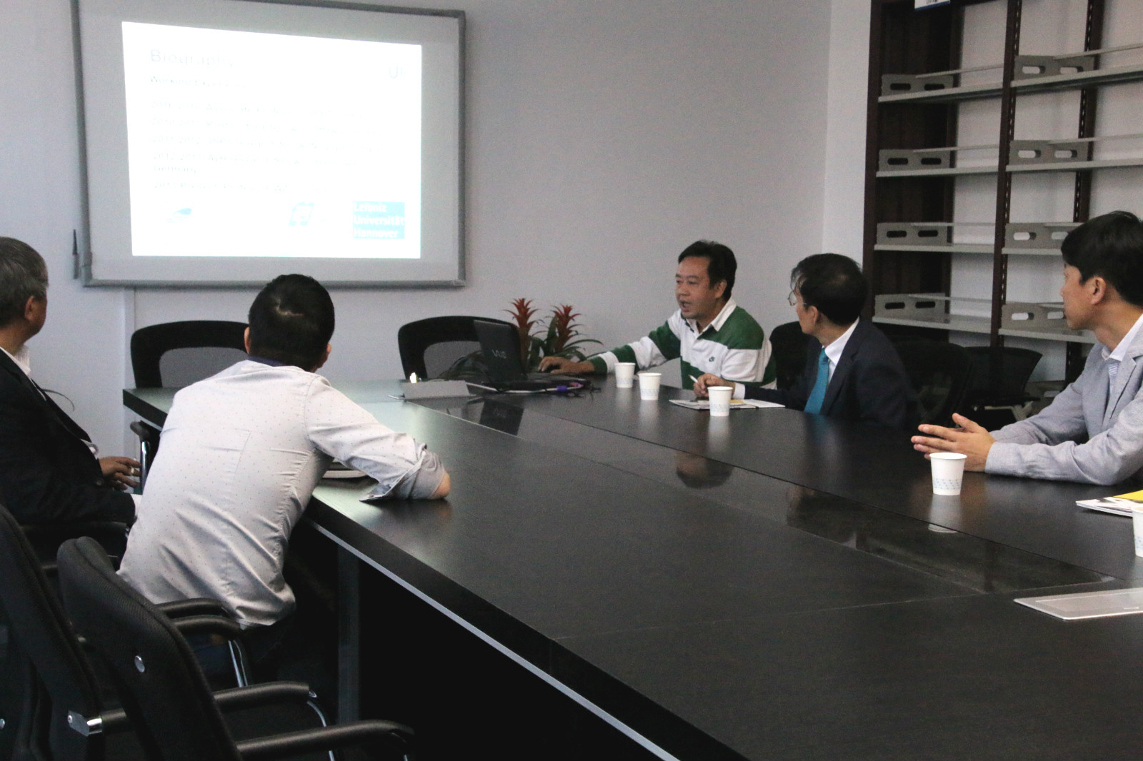 会上,我院对接的博士生导师代表申允德副教授对Gyu hae Park教授的到来表示热烈欢迎,并向其介绍了学院的发展情况。随后,学院学科带头人向家伟教授也向韩国教授介绍了自己的科研团队与成果,双方商谈合作契机。Gyu hae Park教授对我院的发展与取得的各项成果表示赞许,希望双方能开展更宽领域、深层次的合作。