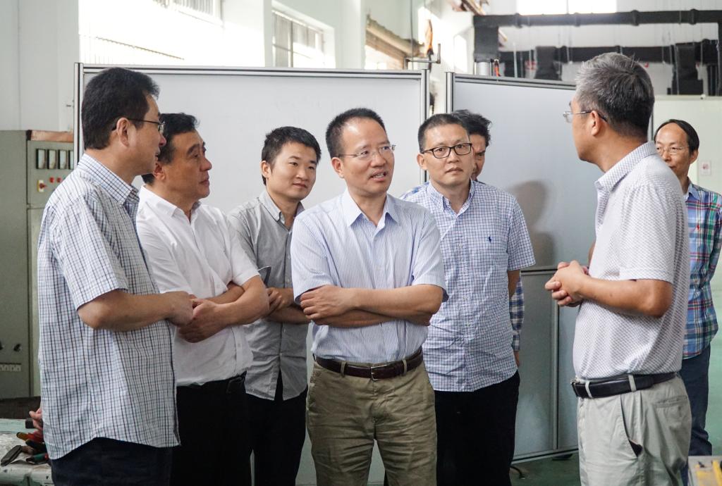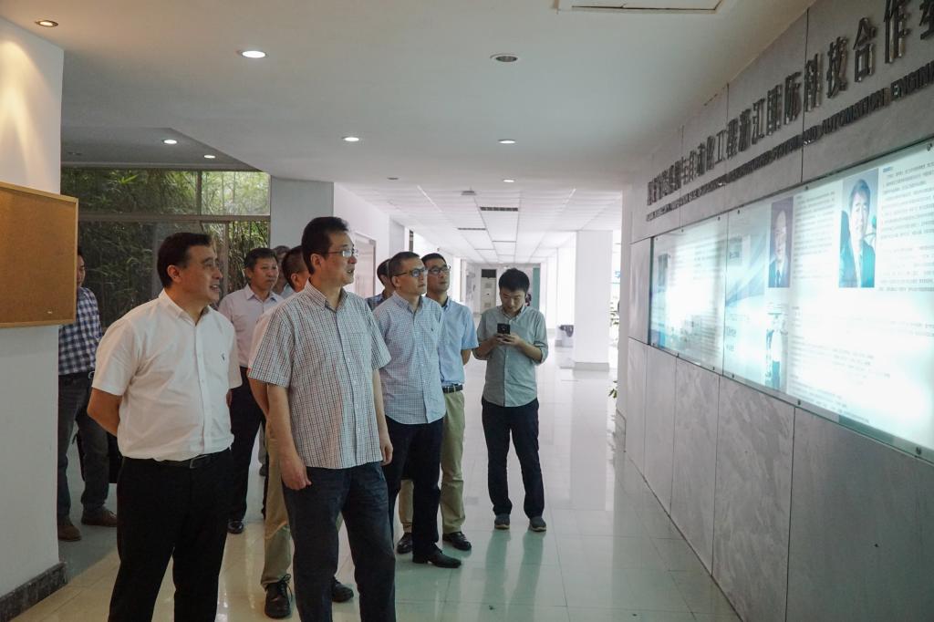 10月11日,省科技厅副厅长王坚一行莅临成人网 调研激光加工机器人国家级国际科技合作基地。温州市科技局副局长朱勇敏陪同调研。