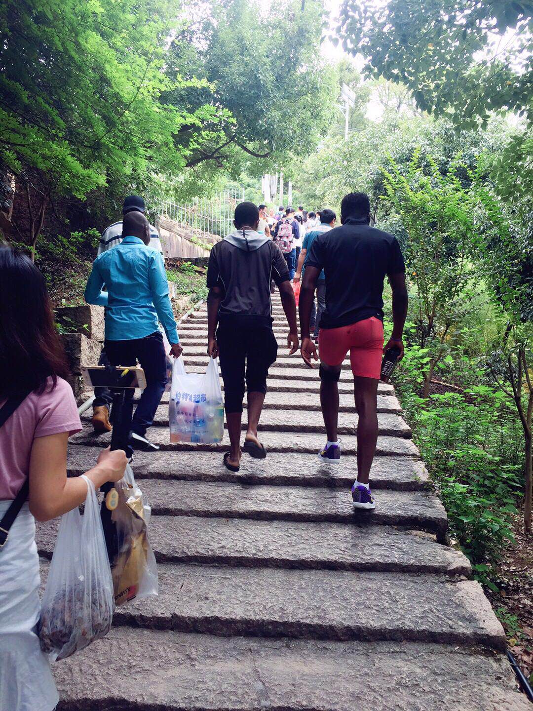 正值中秋,老师们向留学生介绍了中秋节的文化习俗,也了解了学生开学以来的生活学习状况。登高途中许多游人与留学生亲切问好,并合影留念。其间留学生看到一位妇人挑着扁担,就此提出一些力学问题,大家各抒己见,激烈地讨论起来,并坚持回校后一同做实验来验证,保持严谨的科学态度,将课堂所学联系到实际生活问题。