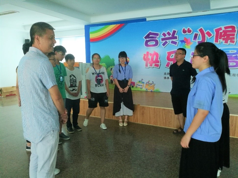 随后,老师们又顶着烈日赶往南阳厂区。抵达时正值上课时间,看到秩序井然的课堂教学,周荣书记向同学们表达了赞扬之情。周书记希望队员们追求的不仅仅是照看孩子们安全快乐过暑假,更应该通过这次实践的宝贵机会,去体味“教师”这个词语的含义,认真去对待实践队工作,争取从日常言行中、课堂教学中教会孩子们成长为有用的人,也要在照顾孩子的不易中,明白并感激父母的养育之恩。合兴集团赵经理也对成人网 的同学们愿意牺牲自己的暑期时间,解决企业员工与子女的假期相聚问题表示了感谢。
