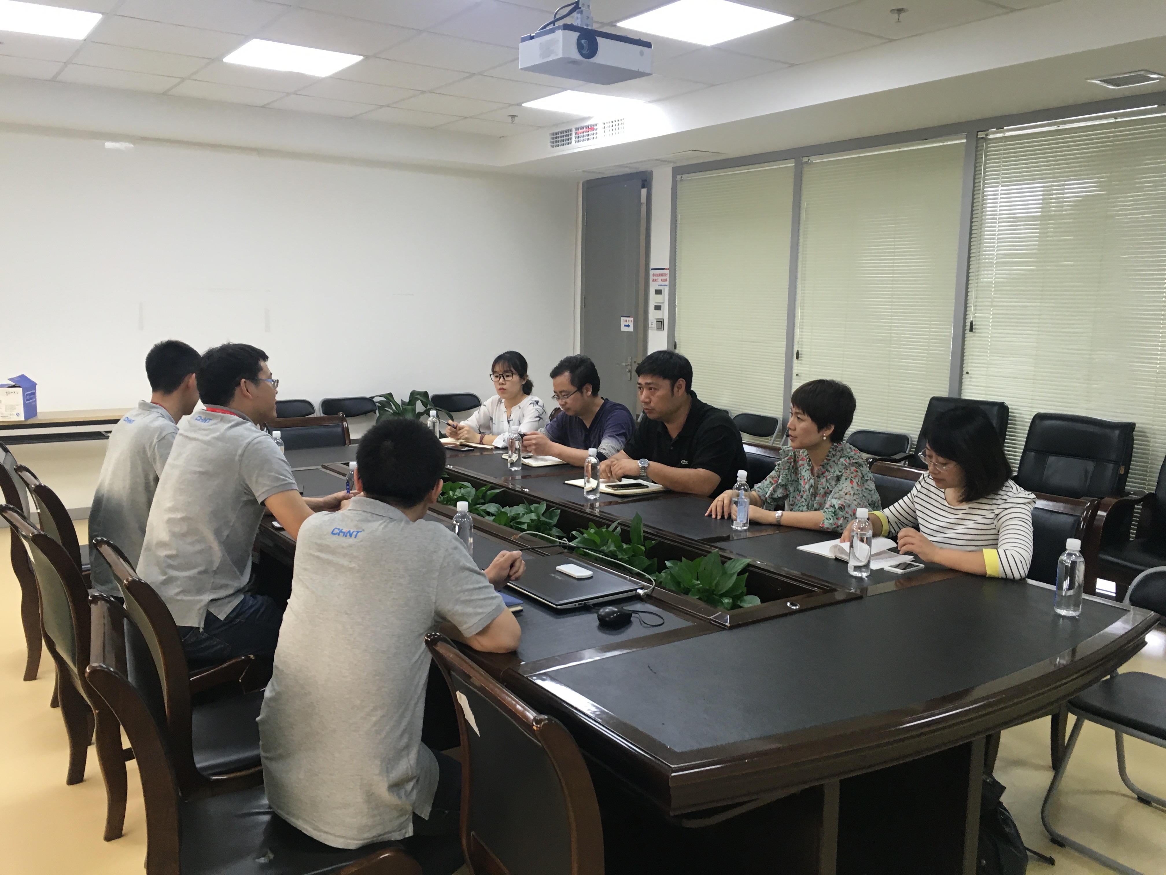 在正泰集团周经理的带领下,成人网 一行人参观了正泰集团的产品展览馆,对该集团的发展历史及一系列产品有了一个初步的了解。在正泰集团的科研室,姜锐、周晨老师就一些技术上的问题与科研负责人进行了询问与了解。就学生假期实习及毕业班就业问题,机电一行人与正泰集团周经理在会议室展开了协商,姜锐老师就大一学生暑期实践、大四毕业班的实习问题与企业方展开讨论。老师们关心的学生培养,发展问题都得到了企业方的解答。李密书记则就学生在企业的住宿、安全问题向企业咨询。