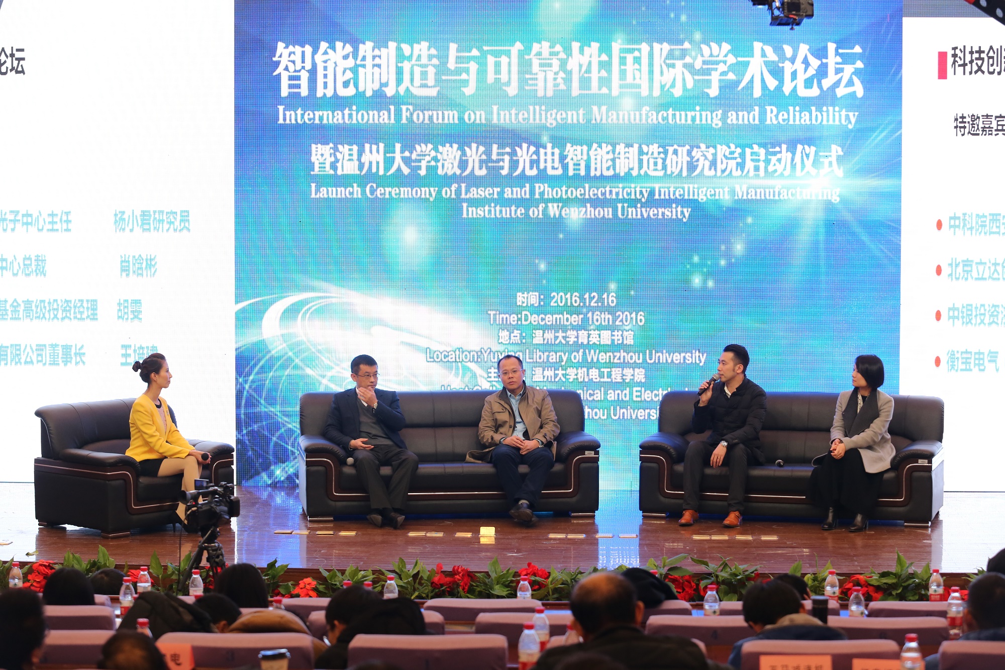 2016年12月16日,智能制造与可靠性国际学术论坛暨成人网 激光与光电智能制造研究院启动仪式于成人网 育英图书馆报告厅举行。成人网 校长李校堃,副校长薛伟、钱强,温州市浙南科技城管委会主任赵典霖,温州市发改委副主任周建清,温州市经信委副主任徐竹良,温州市科技局副局长匡连庭,国内外的专家学者以及金融界、企业界的代表出席了本次会议。会议由成人网 副校长钱强主持。