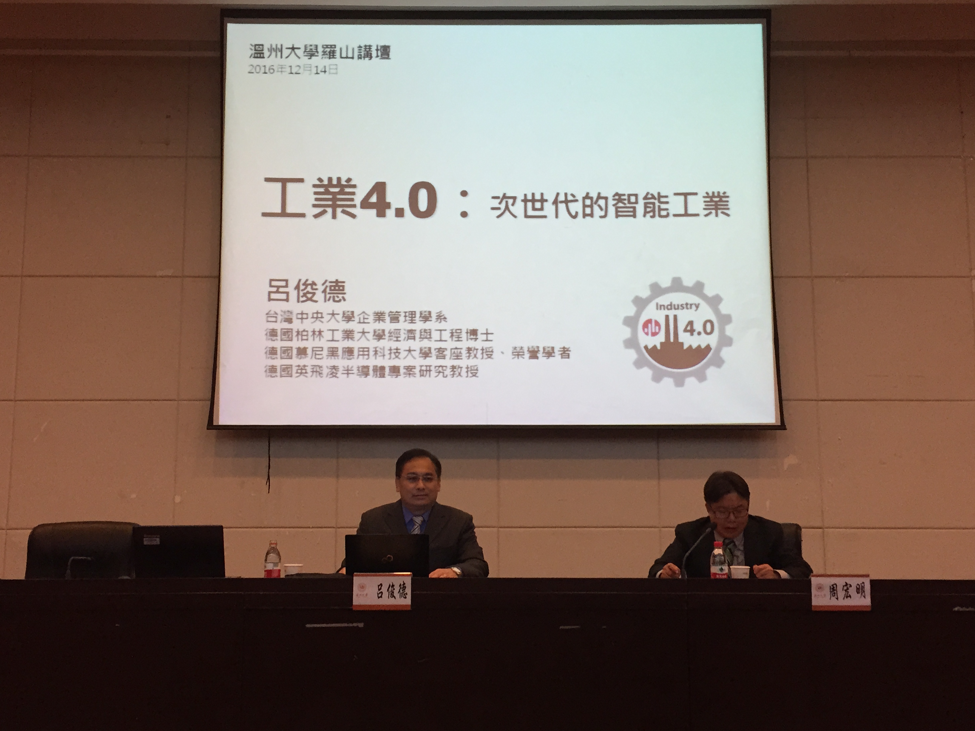 2016年12月14日下午,台湾工业4.0体系研究首席专家、台湾中央大学企业管理学系吕俊德副教授做客成人网 罗山讲堂,为成人网 、温州职业技术学院的100余名师生作了一场题为《工业4.0:次世代的智能工业》的学术讲座。讲座在成人网 育英图书馆二楼学术报告厅举行,由成人网 和外事处联合承办,成人网 院长周宏明主持。