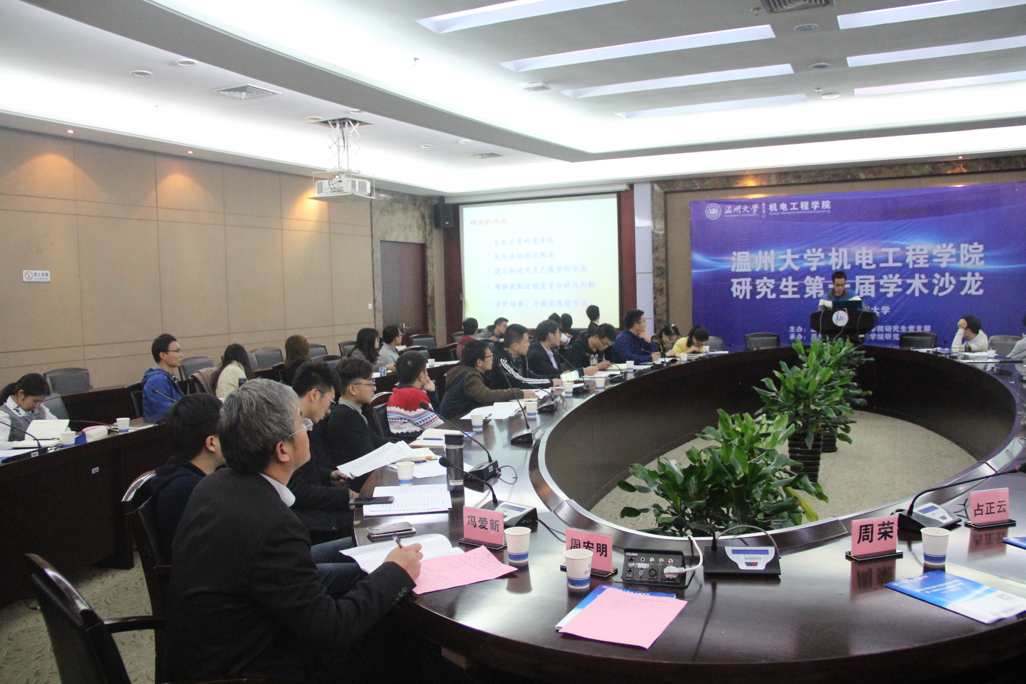随后,研究生学术报告。来自不同年级的13名研究生依次对自己目前所研究方向的知识及成果展开汇报,汇报涉及汽车、激光、故障诊断、液压、质量可靠性等多个领域,可谓百家争鸣,百花齐放。学生报告中,在提问环节大家积极踊跃的发言,充分展现了我院研究生对科学研究的浓厚兴趣,加深了对相关专业领域的了解。