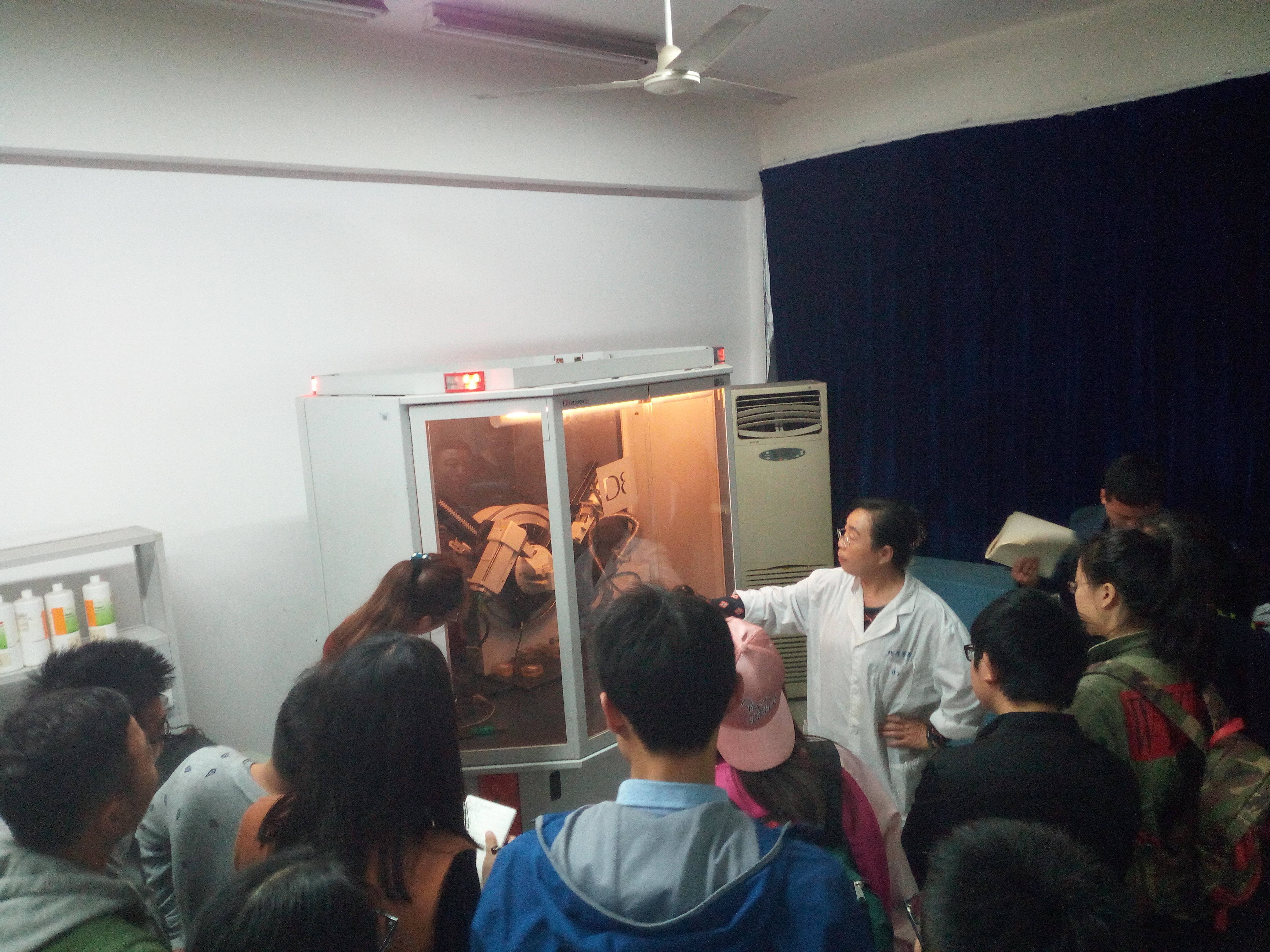 11月22日上午,全院研究生参观了学校分析测试中心,张景峰老师和张乔老师接待。张景峰老师详细介绍了他负责的扫描电镜设备构成及制样标准,并找出之前做过的结果,向现场研究生们讲解,其中笔头的微观结构给大家留下了深刻印象。张乔老师从仪器原理开始,深入浅出地介绍了她负责的X射线粉末衍射仪和热分析仪的性能和应用范围以及制样需要注意的地方。