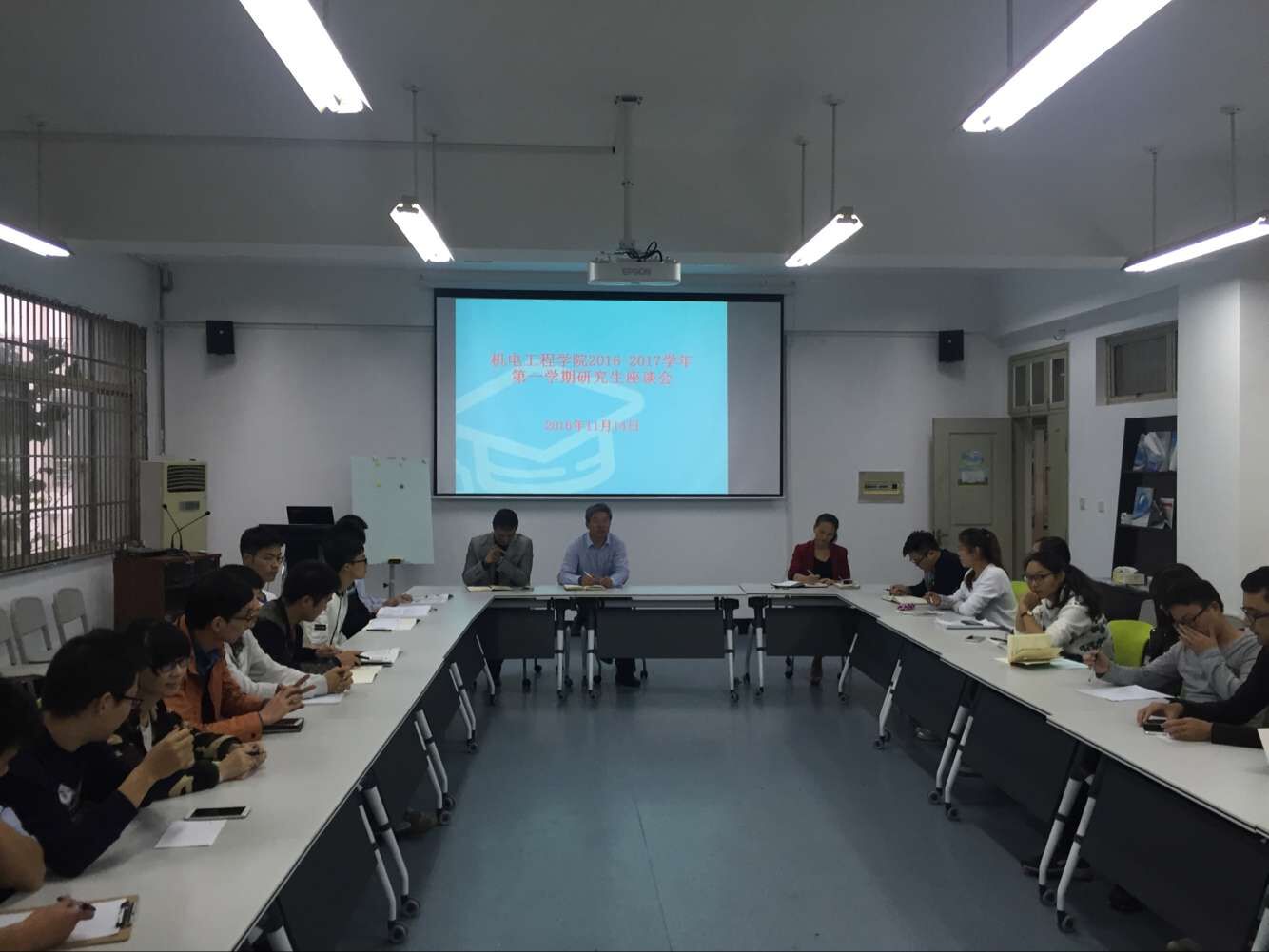 2016年11月14日,成人网 2016-2017学年第一学期研究生座谈会在学院6B201会议室召开,学院党总支书记周荣、副院长冯爱新、学生科孙双、院办占正云等领导和老师出席,学院40余名研究生参加了座谈会。