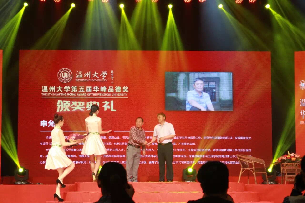 近日,成人网 第五届华峰品德奖颁奖典礼在育英大礼堂隆重举行,会上,十位获奖者受到大会的隆重表彰,我院申允德老师获此殊荣。