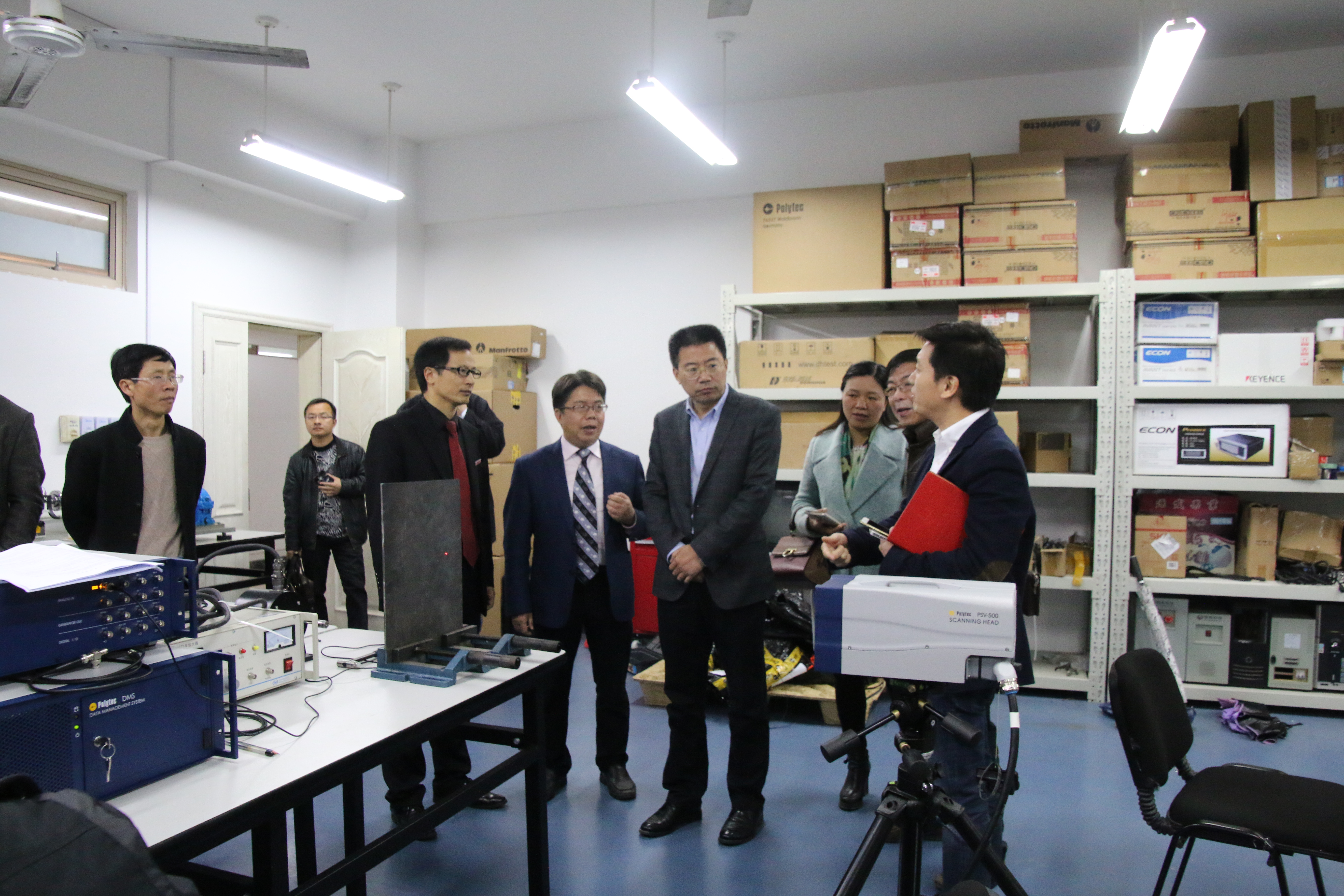 温州大党委委员、组织部部长方益权、成人网 院长周宏明陪同天台县委常委副县长竺恒峰一行参观了激光加工机器人国家级国际科技合作基地、浙江省激光加工机器人重点实验室和相关科研场所。