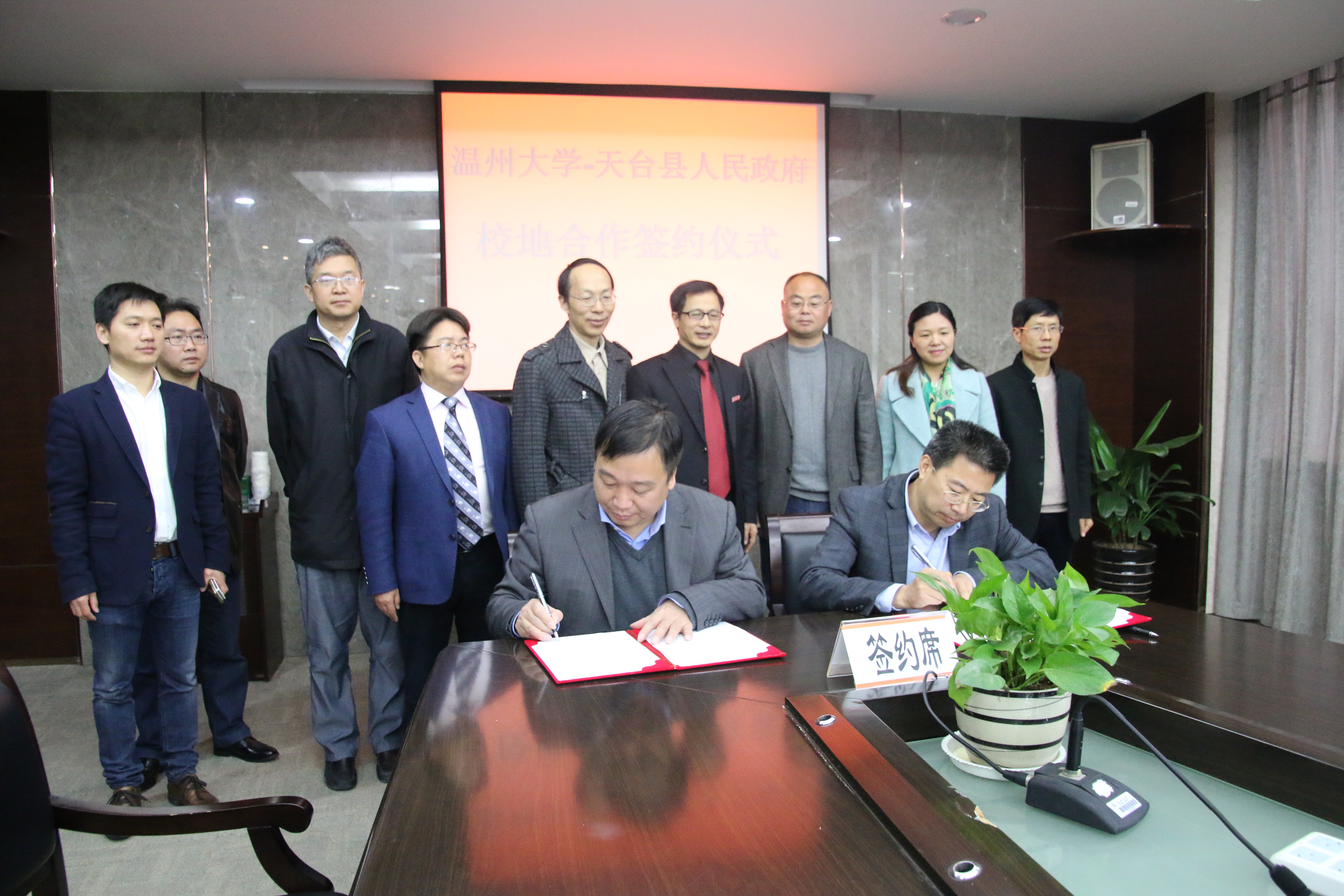 3月30日上午,成人网 与天台县人民政府就校地合作签约仪式在成人网 行政楼419会议室举行,成人网 副校长赵敏和天台县委常委副县长竺恒峰代表双方签署合作协议。