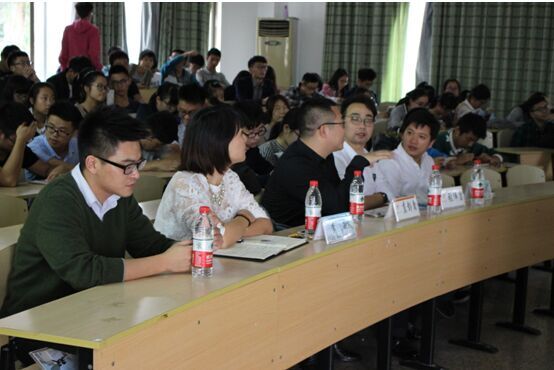 另一位优秀的学长张伟康上台分享了自己的经历。通过简明讲述自己进入社会所学到体会到的东西,对同学们以后就业提供了宝贵的经验,同时也让同学们对于企业的经营理念有了更深层次的了解。另一方面,张伟康学长还不时的说上几句幽默诙谐的话,让全场的气氛再次调动了起来。