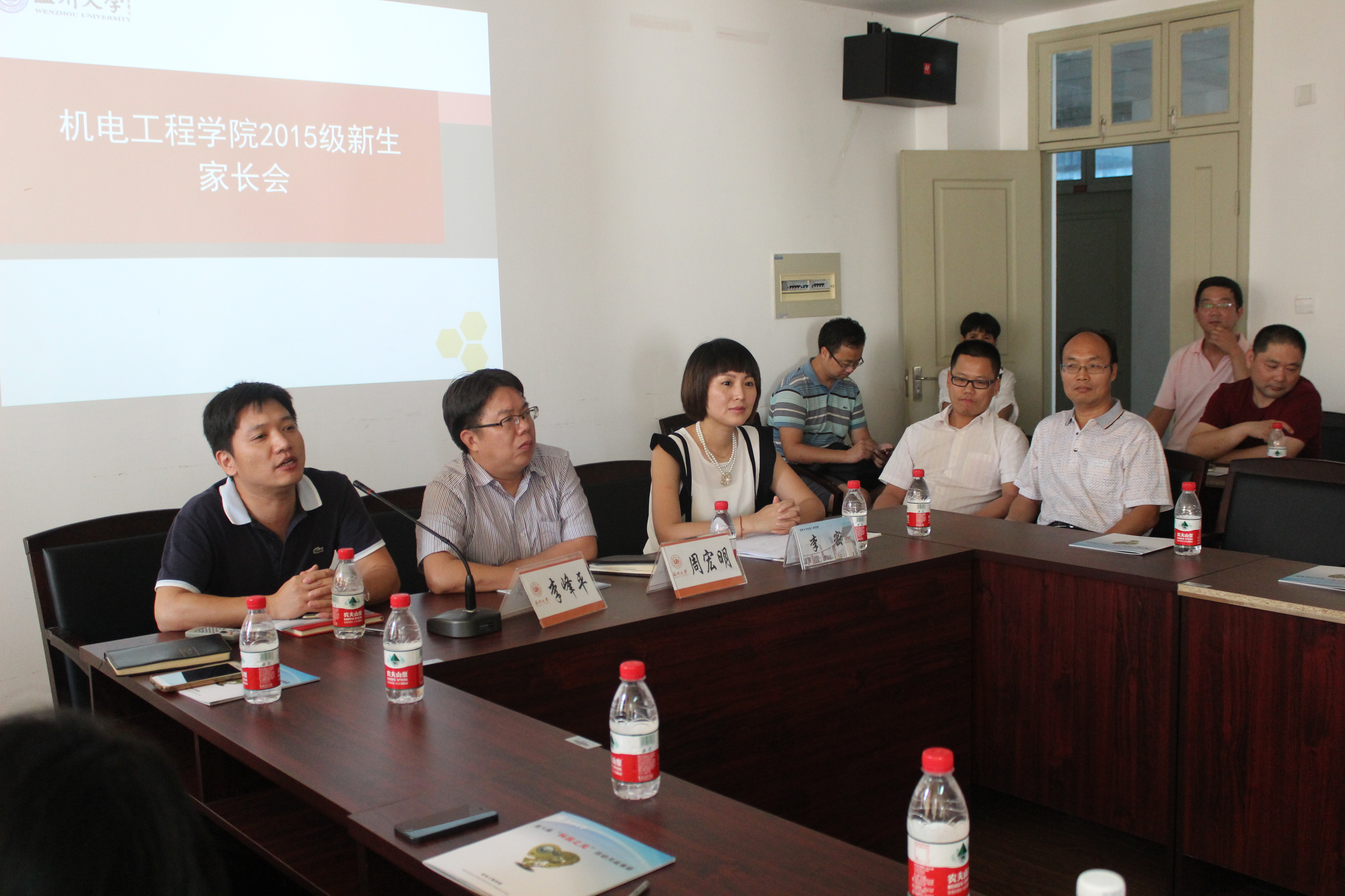会上,李密副书记首先对2015级同学和家长来到成人网 表示了热烈的欢迎,并为大家介绍了学院的基本情况。周宏明院长向家长们详细介绍了学院的专业建设和人才培养、课程设置和师资队伍、学科和科研等方面情况。周院长同时指出,人才培养是成人网 的首要任务,学院大力倡导国际化人才的培养,为学生的成长成才提供广阔的空间,希望家长和学院一起努力,尽快帮助学生转变学习方式方法,同时注重自主学习、人际交往等各种能力的培养,使我们的学生成为社会有用之才。李峰平副院长介绍了学院学生国际化交流情况、师资和课程设置,鼓励学生通过多种途径加强英语等学习,在夯实专业技能的基础上,提升自身竞争能力。李密副书记从学生管理的角度,介绍了学院新生始业教育相关安排、学院学生管理和学风制度、选课制度、学生就业情况,希望家长能多和学院沟通联系,共同关注学生学业发展、职业规划和身心健康。