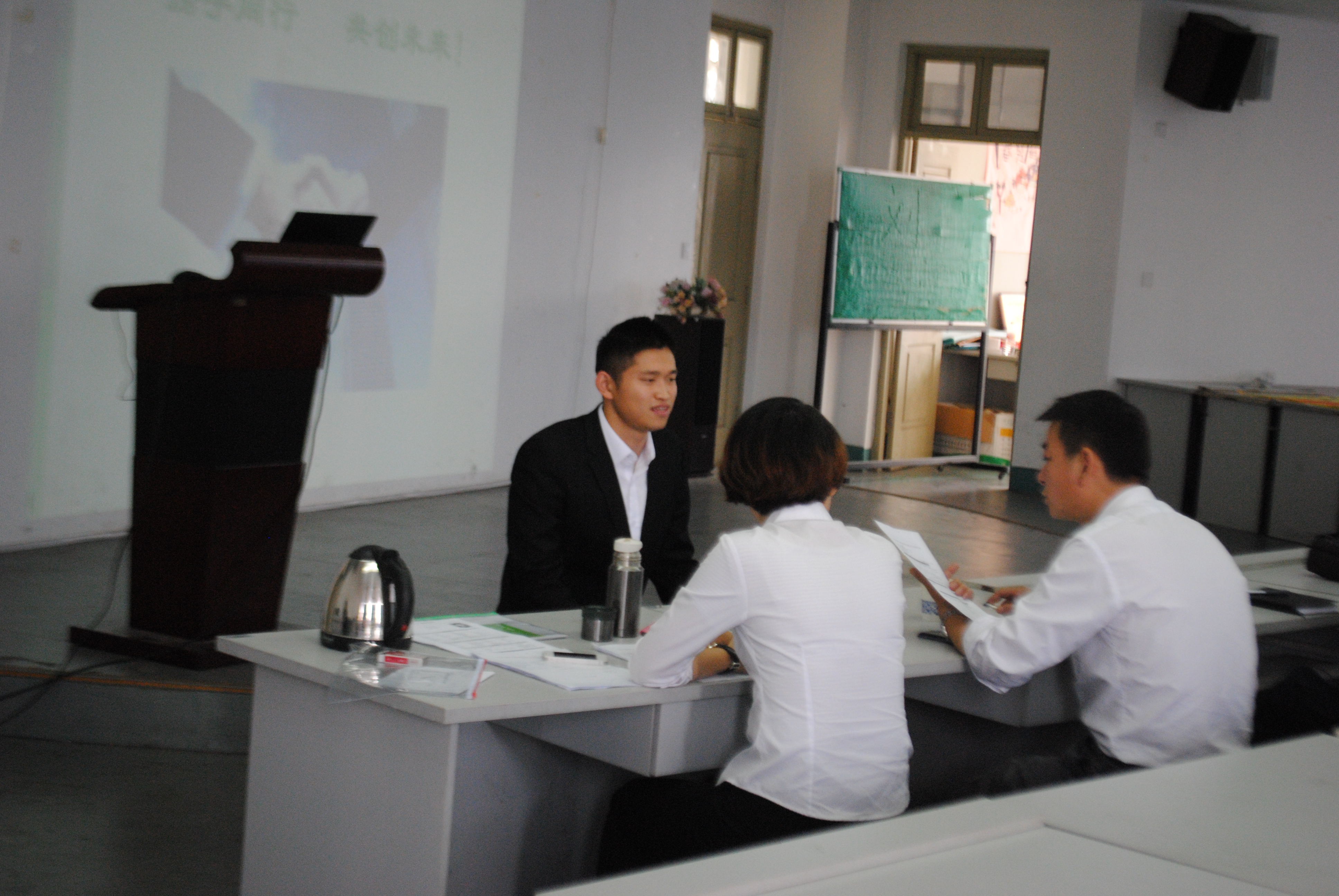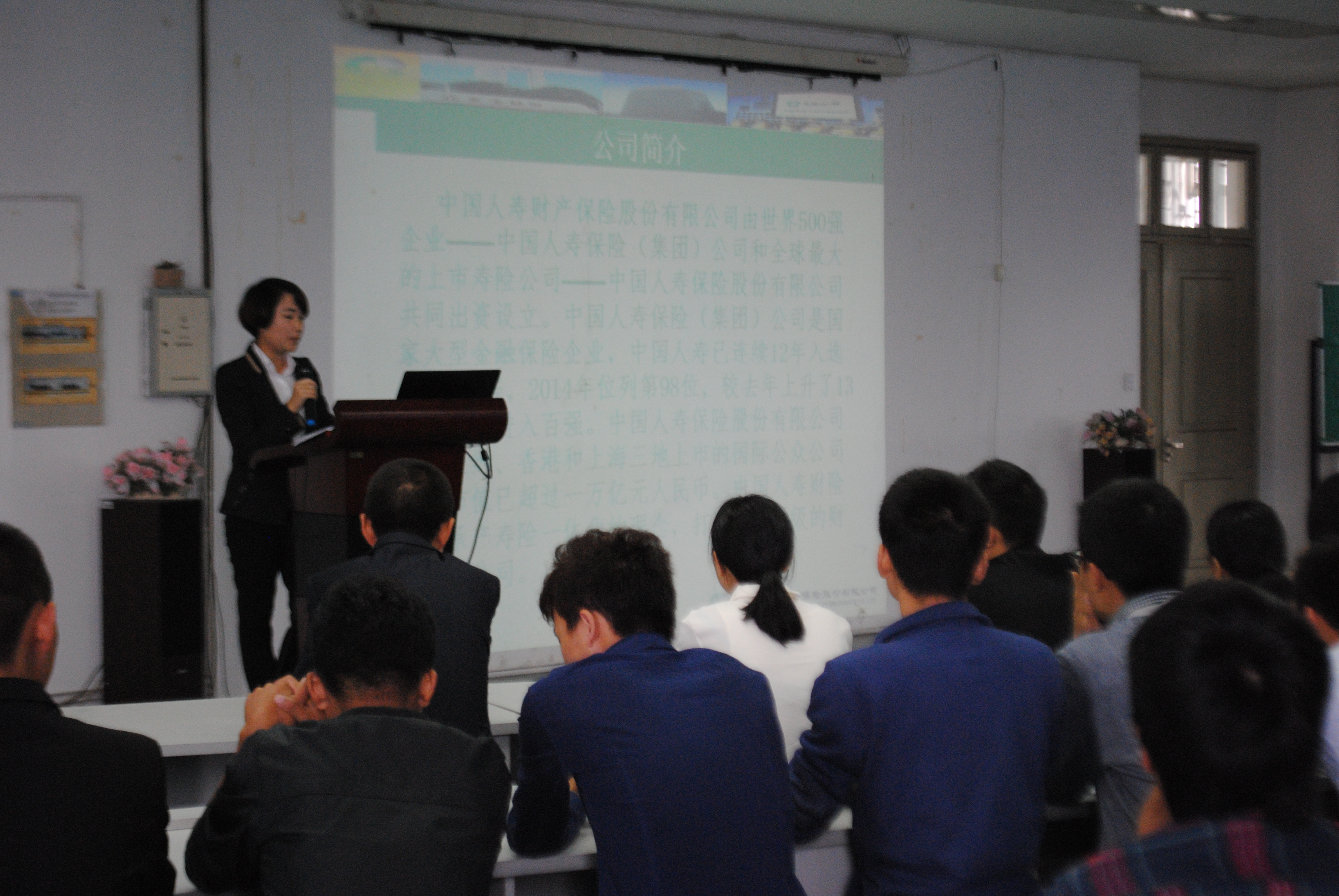 首先,人寿财险人力资源部马泽萍经理进行宣讲,介绍公司概况、发展历史、浙江省分公司基本情况、机关所组织构架及此次招聘的招聘岗位等。随后进行现场问答,毕业生们人寿财险公司自身及此次招聘的要求、发展空间等方面提出问题,面试官给与相应的解答。最后为现场面试环节,40多名有意向的毕业生依次轮流进行面试,其余毕业生们则在教室有序等待。招聘会现场气氛热烈而融洽,同学们和企业的人员进行了良好的互动,双方都表示对此次招聘会相当满意。会后,人寿财险表示,此次招聘取得满意效果,将继续加强与我院的合作,实现共同发展。