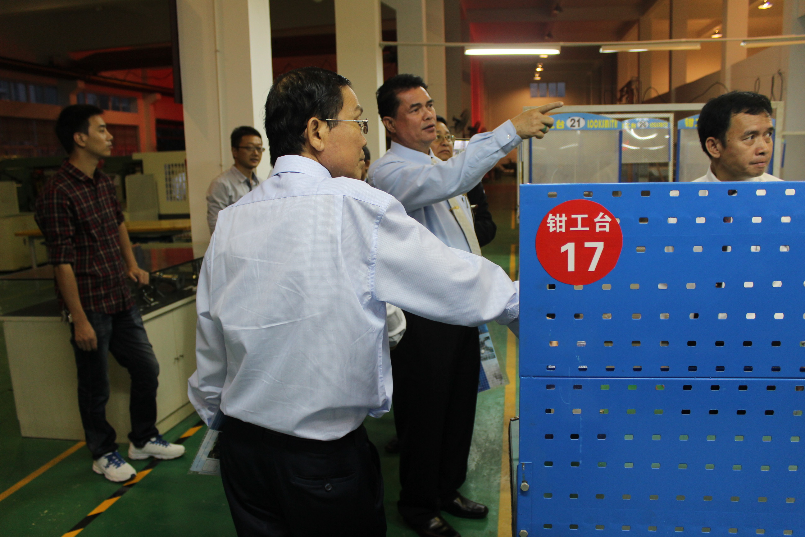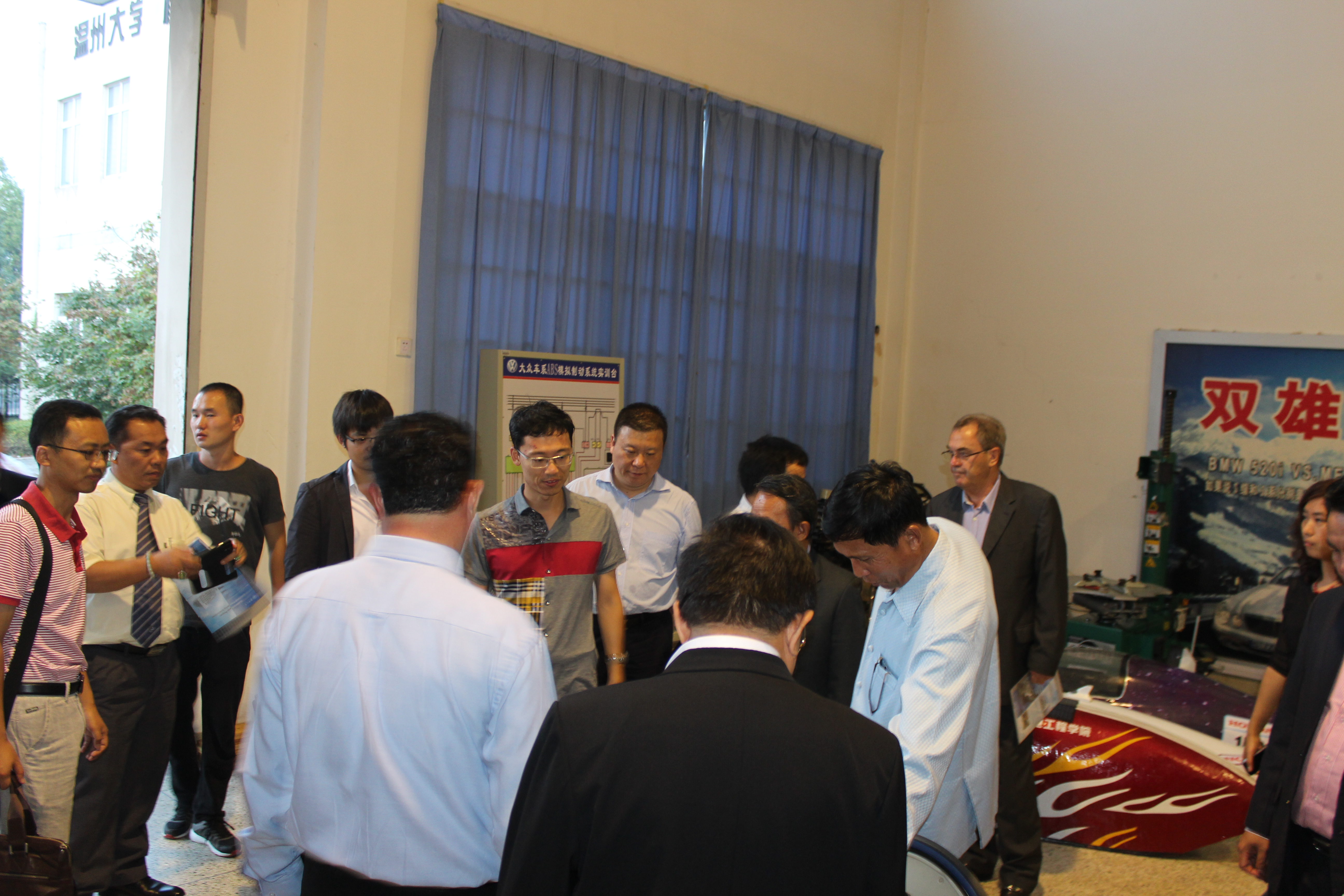老挝学校代表团首先参观了我院汽车服务工程实验室。汽车服务工程教研室主任周斯加博士向来访人员介绍了汽车工程专业的实验室建设和人才培养情况。随后,老挝学校代表团参观了我院工程训练中心,详细了解了工程训练中心的软硬件设施和运行情况。