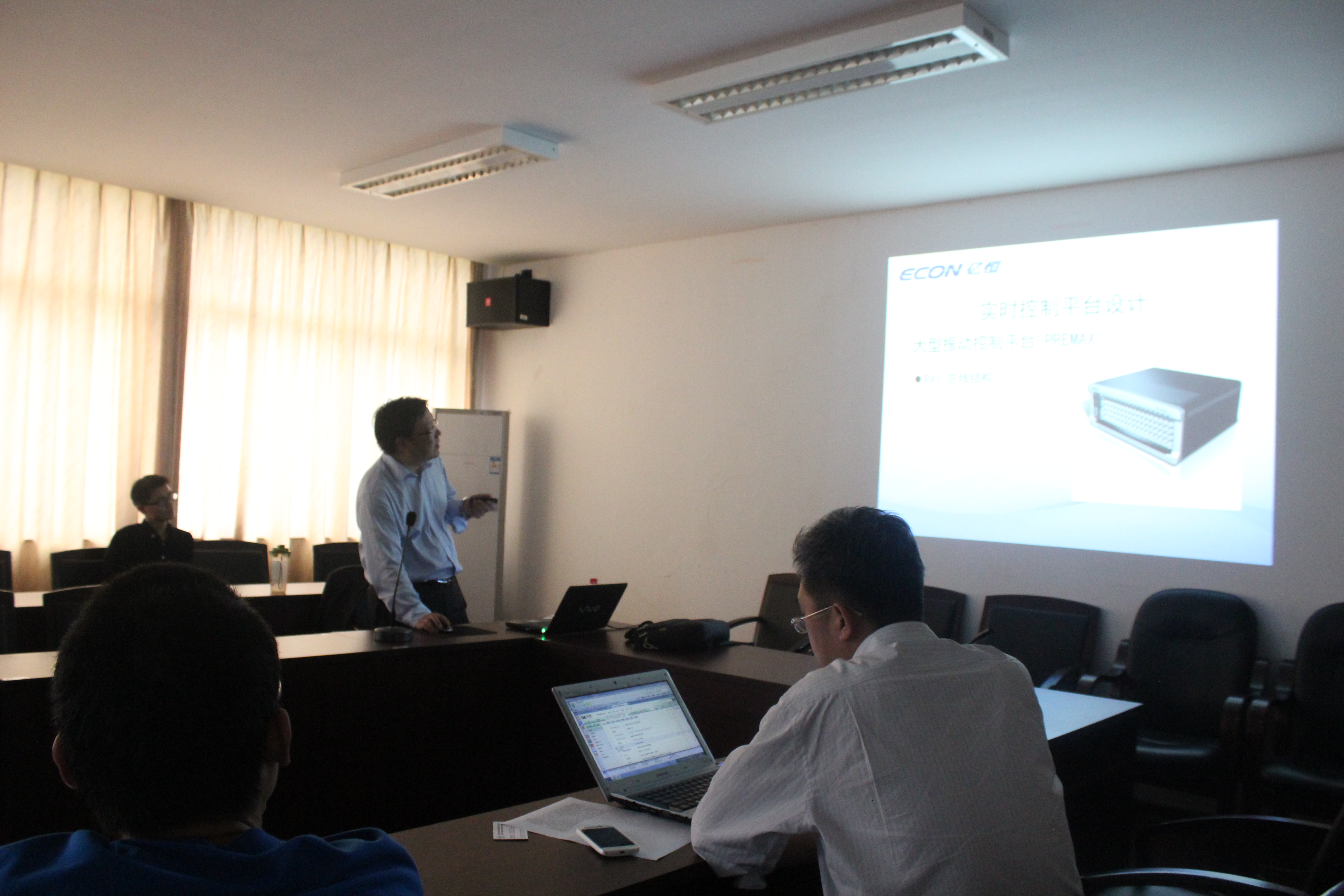 陈章位教授首先介绍了大型振动测试与控制仪器的主要结构与特点,随后,陈教授基于自身广博和深邃的专业背景,向在场师生讲述了振动试验控制技术的整个过程和相关技术细节,并通过一些实际的机械产品向大家说明了它们的工程价值以及在航空航天、汽车制造等领域的广泛应用。最后,在场师生就这一领域的相关问题同陈教授进行了交流,陈教授用诙谐幽默的语言对大家的提问进行一一讲解,现场的气氛非常活跃。