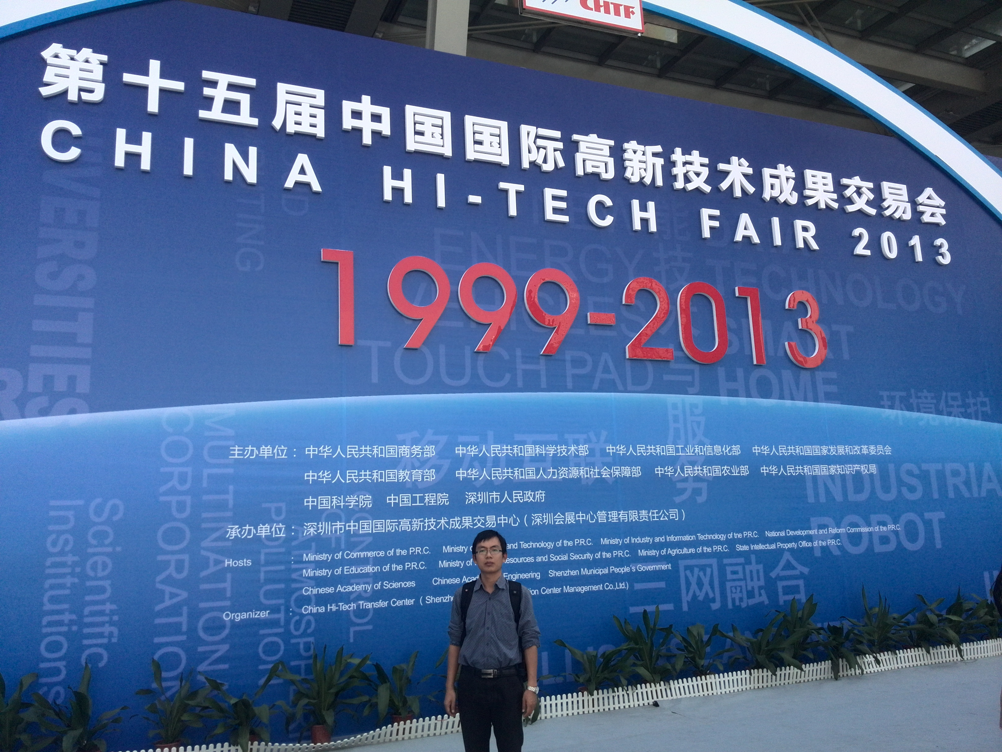 2013年11月16日,第十五届中国国际高新技术成果交易会在深圳会展中心开幕,中共中央政治局委员、国务院副总理汪洋和中共中央政治局委员、广东省委书记胡春华出席了第十五届高交会启动仪式。本届高交会分为“高新技术成果交易、高新技术专业产品展、中国高新技术论坛”等六大板块,总展览面积超过11万平方米,有超过50个国家和地区的100多个代表团、约3000家参展商参展、1万多个项目参加展示交易和洽谈。