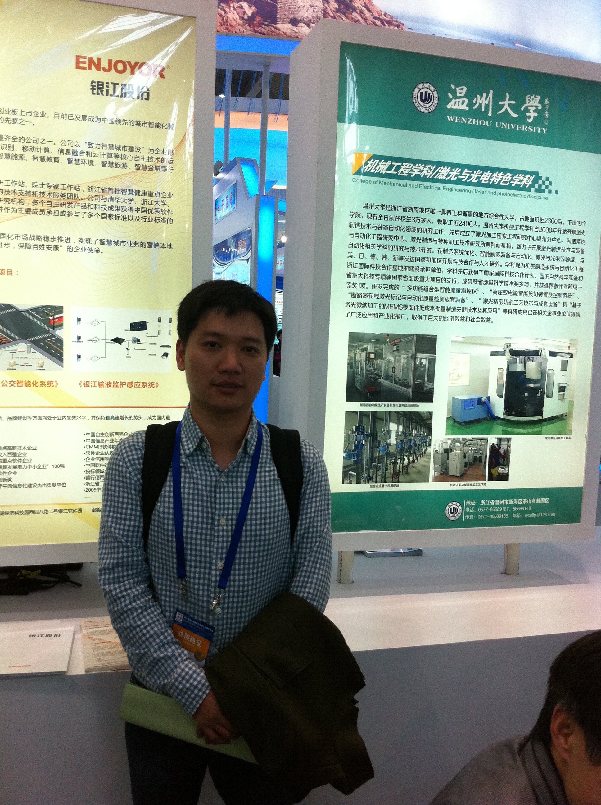 浙江省科技厅、省商务厅、省发改委、省经信委联合精心组织了省内各个高等院校、科研院所、高新技术企业积极参展,我院机械工程学科/激光与光电特色学科代表成人网 参展。成人网 机械工程学科自2000年开始开展激光制造技术领域的研究工作,先后成立了激光加工国家工程研究中心温州分中心、制造系统与自动化工程研究中心、激光制造与特种加工技术研究所等科研机构,致力于开展激光制造技术与装备自动化相关科学的研究与技术开发,学科先后获得了国家国际科技合作计划、国家自然科学基金和省重大科技专项等国家省部级重大项目的支持,成果获省部级科学技术奖多项,并获推荐参评省部级一等奖1项。本次参照的研究成果“ 多功能组合型智能流量测控仪”、“高压双电源智能投切装置及控制系统”、“断路器在线激光标记与自动化质量检测成套装备”、“ 激光精密切割工艺技术与成套设备”和“基于激光微纳加工的MEMS零部件低成本批量制造关键技术及其应用”等科研成果已在相关企事业单位得到了广泛应用和产业化推广,取得了巨大的经济效益和社会效益。