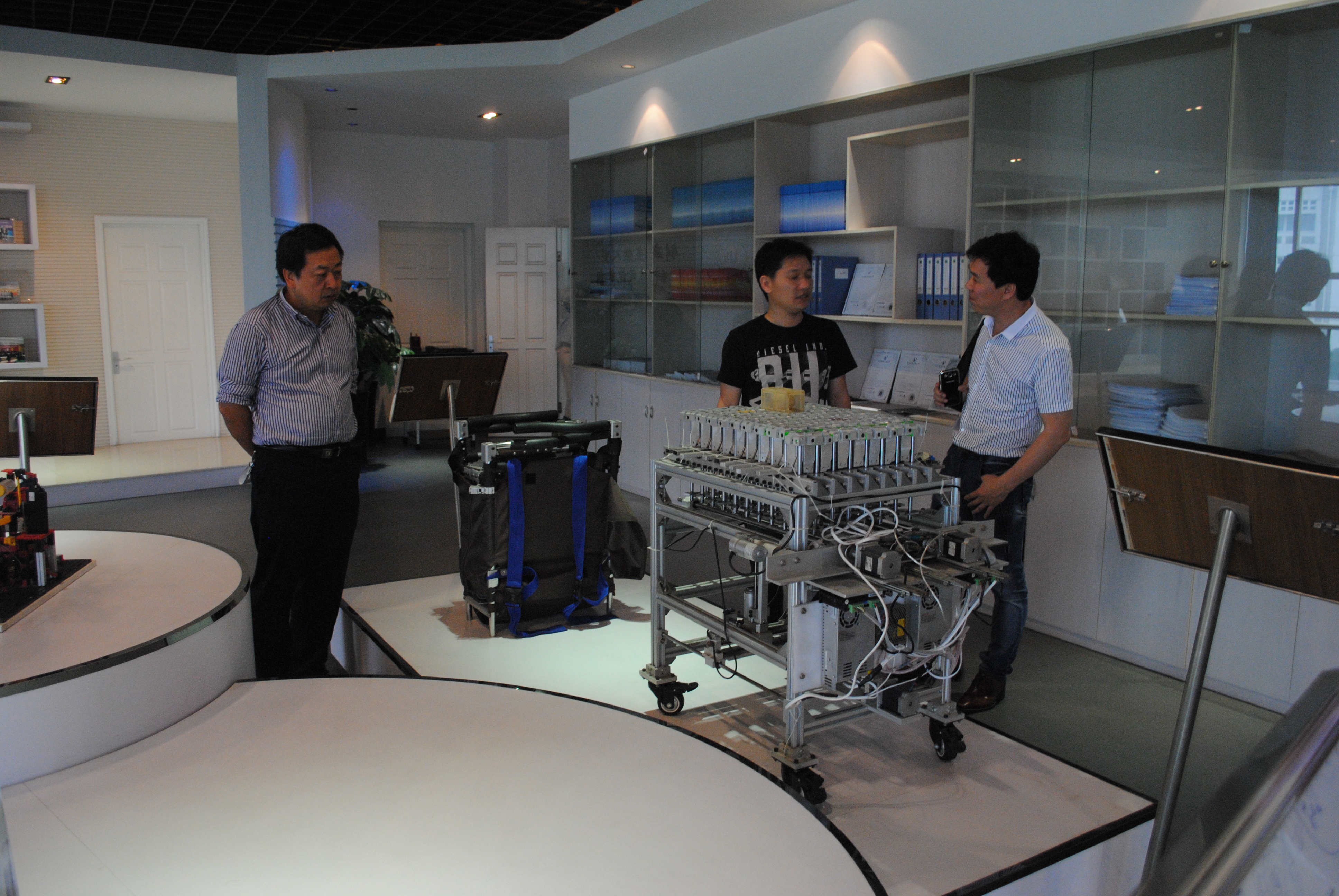 会上,方乐平书记对蔡忠娒董事长一行的到来表示欢迎。李峰平副院长介绍了学院专业设置、学科建设和人才培养的基本情况以及各研究所的科研能力、技术成果及技术服务方向。蔡忠娒董事长对学院的热情接待表示感谢,并介绍了浙江多迪斯泰保健器材有限公司的基本情况,表达了对先进制造技术和高端机电人才需求的意愿。随后蔡忠娒董事长一行参观了学院机械制造系统与自动化工程技术研究中心等实验室和学生科技创新作品展示厅。