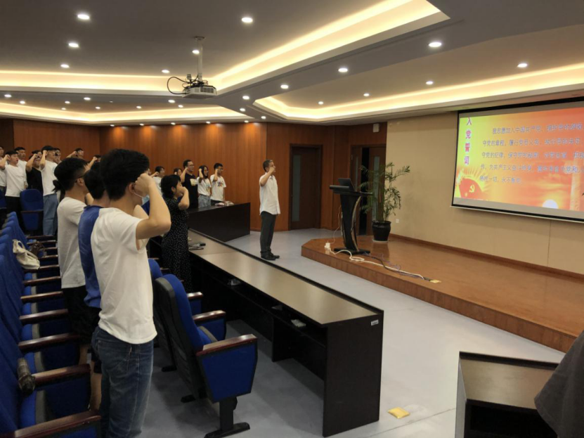 会议开始,周荣书记带领全体党员同志宣誓,重温入党誓词。周书记以“永远跟党走”为题,与党员同志们一起学习,无论是刚加入党组织的新党员,还是将要进入社会的毕业生党员,要不忘初心,牢记入党誓词,永远跟党走。