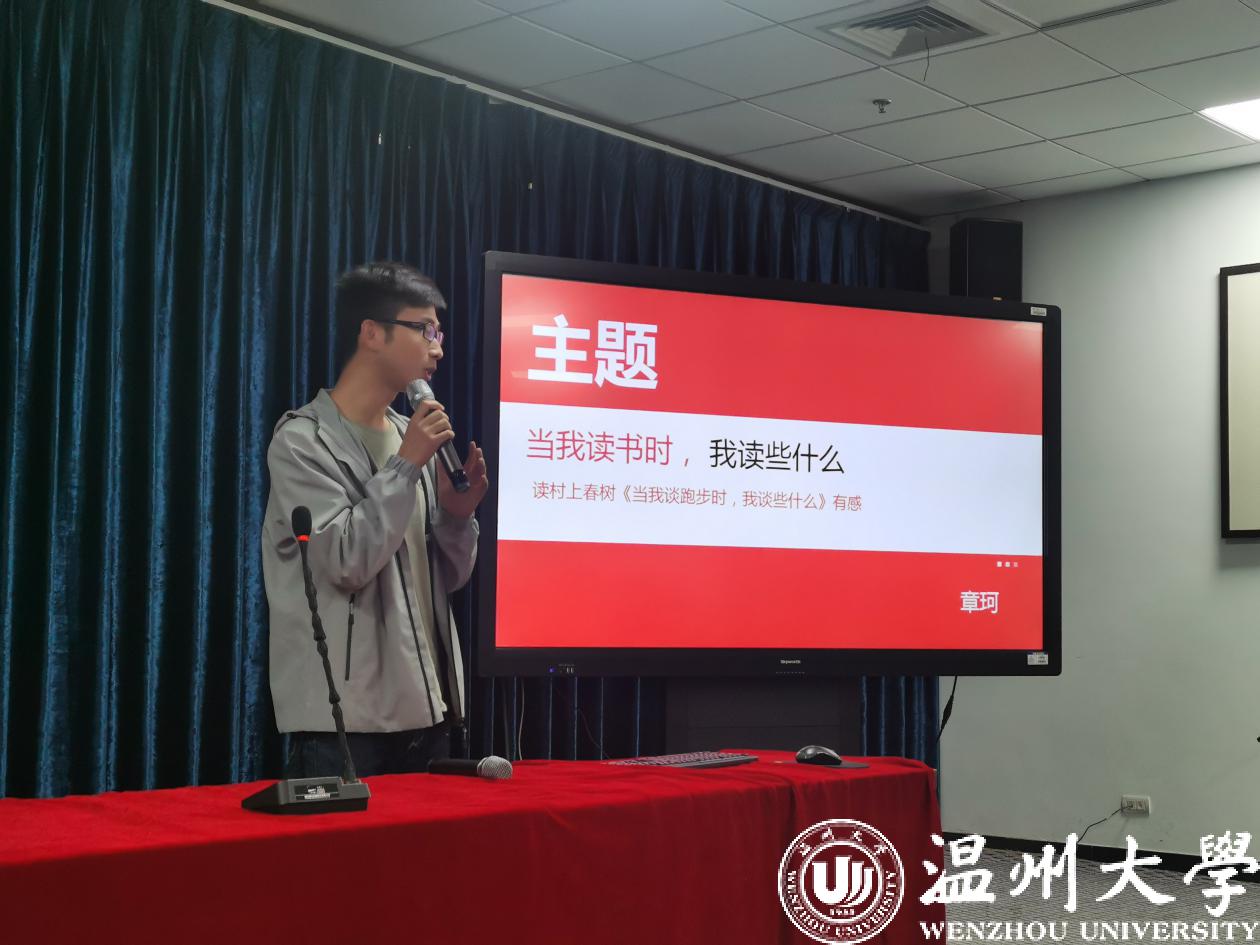 在不断前进的道路上,要适度关注未来,知道自己为什么而活;适度关注现在,给个人和组织赋能;淡忘过去,给自己新的希望。李纪峰同学推荐的《知行合一》一书带给读者很大的感悟,在人生漫漫征途中,要不断践行知行合一的理念,把握当下,展望未来。当你读书时,你读些什么呢?章珂同学借用村上春树的一本书《当我谈跑步时,我谈些什么》引出了这样的一个话题。我们总会疑惑,我们读了很多的书但大部分都会随着时间遗忘,那么我们读书的意义是什么呢?他引用网络上的一句最佳评论“当我还是个孩童时,我吃过很多,但大部分已经一去不复返了,但可以肯定的是它们中的一部分已经长成我身体里的骨头和血肉,而阅读对我的影响也是如此。”来告诉在场的同学们阅读的数量决定精神的高度这一深刻道理。没有比活着更美好的事,也没有比活着更艰难的事。宋晨祺同学通过余华的经典小说《活着》分享了她的心得感悟,人生在世,没有什么事情是比活着更可贵的,也没有什么痛苦是不可跨越的,坚持住就是胜利。钱丽艳同学分享了《放风筝的人》一书,阅读这本书,可以让我们体会到挚友对人生的重要性,也会让更加坚定自己的信念去追寻自己心中的梦想,也许我们每个人心中都有一个风筝,无论它意味着什么,让我们勇敢的追。谈佳琪同学带着余秀华的诗集《摇摇晃晃的人间》分享了作者的历程故事,这位因出生时倒产、缺氧而造成脑瘫的一个人不断怀着对理想的向往和生活的热爱坚强生活着,她的诗词细腻清澈,给读者以一种饱满的热情去对待美好生活的视觉冲击感。