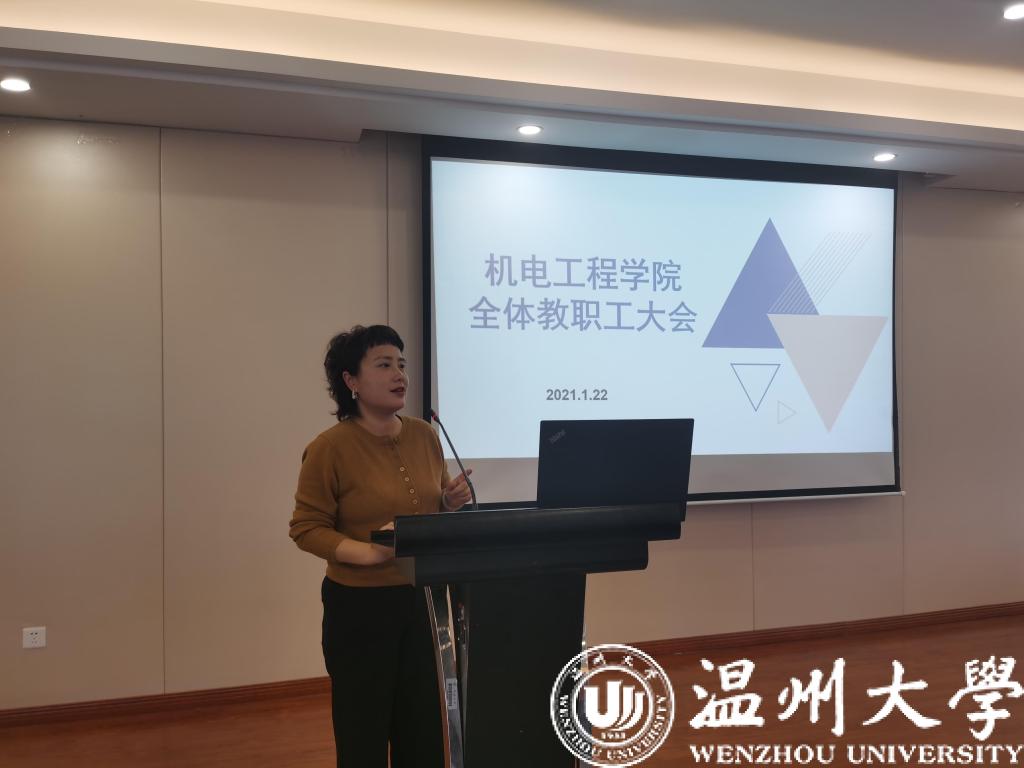 2021年1月22日,成人网 在6B309报告厅召开本学期期末全院教职工大会。学院全体教职工参加会议,学院党委书记周荣主持。