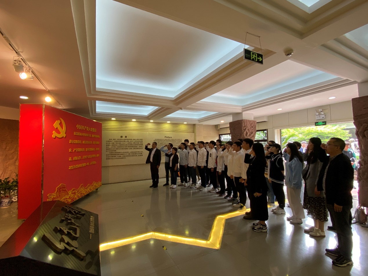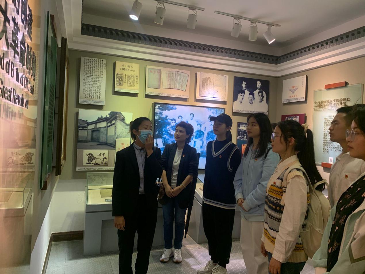 大家走进温州革命历史纪念馆,在学院党委书记周荣的带领下,全体党员同志重温入党誓词。一字一句,回顾中国共产党人的初心使命,重温入党初衷。