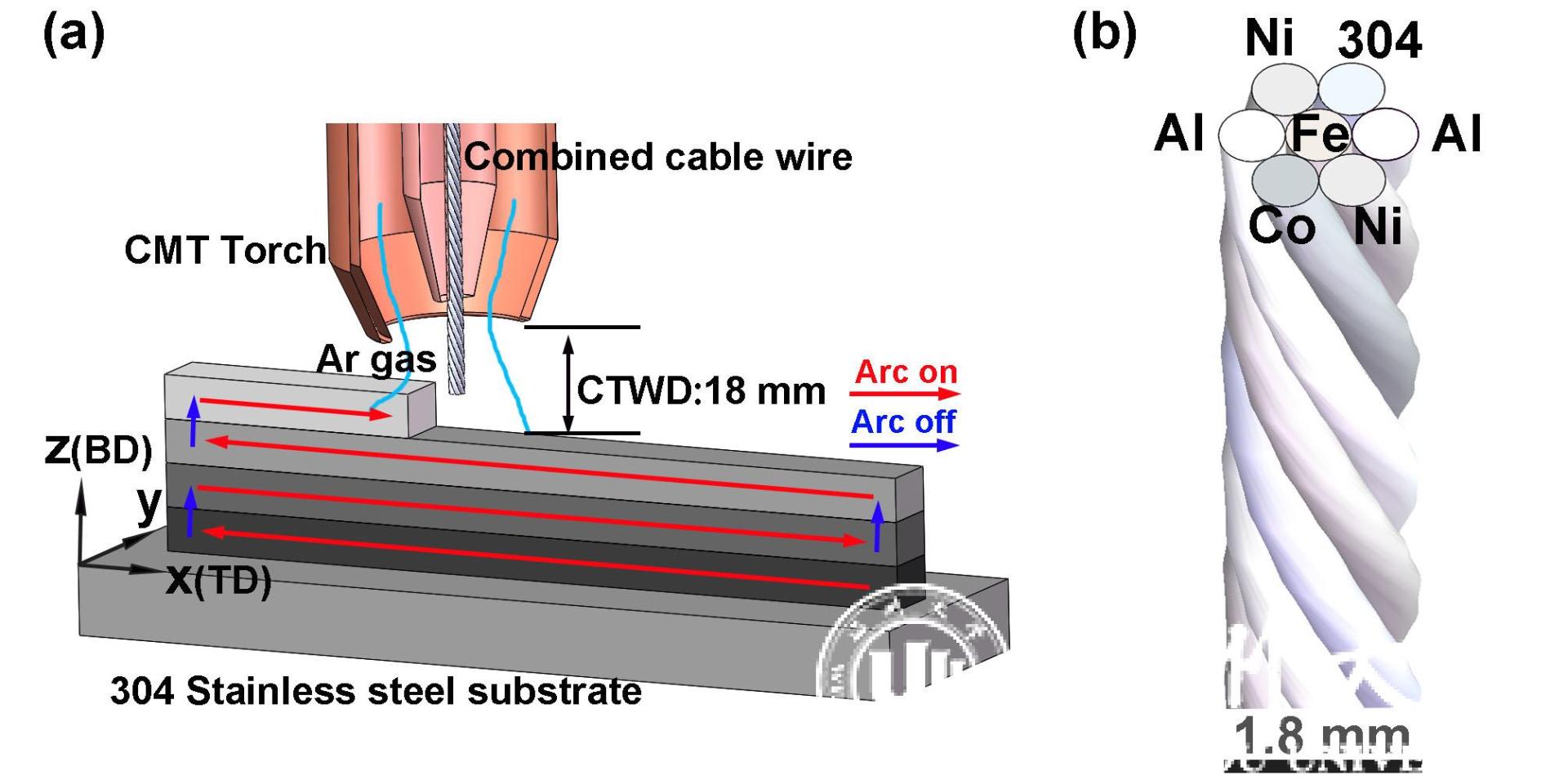 近日,成人网 研究生沈晴凯等人在陈希章教授的指导下完成的科研论文“Fabrication of bulk Al-Co-Cr-Fe-Ni high-entropy alloy using combined cable wire arc additive manufacturing (CCW-AAM): Microstructure and mechanical properties”在国际著名工程技术TOP期刊《Journal of Materials Science & Technology》(IF=6.155)上发表,并被遴选为封面论文。该论文提出了一种采用新型绞丝进行高熵合金电弧增材制造的方法,为大尺寸和复杂形状高熵合金材料及产品的制造提供了一种高效高质有前景的制造方法,制造的Al-Co-Cr-Fe-Ni高熵合金达到强度2.8GPa和塑性42%的优异结合。该方法突破后,系列成果陆续发表在JOURNAL OF ALLOYS AND COMPOUNDS、MATERIALS SCIENCE AND ENGINEERING A等工程技术TOP期刊发表。