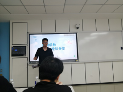 綦法群老师一一介绍参加本次交流会的8位学长的基本情况,成功考上中国科学院大学、合肥工业大学、上海大学等国内双一流名校研究生的8位学长与学弟学妹们分享他们在考研过程中的点滴经验:如何备战数学、英语、政治及专业课,如何选择目标学校以及复试中应该注意的一些问题等等。互动环节气氛活跃,同学们争先恐后地向学长们请教如何克服考研复习中遇到的焦虑、恐惧等心理障碍以及如何制定合理的学习计划等问题,学长们对同学们的疑惑都耐心的一一作答,还鼓励大家要敢于迎接挑战,制定更高的奋斗目标。
