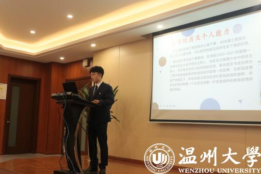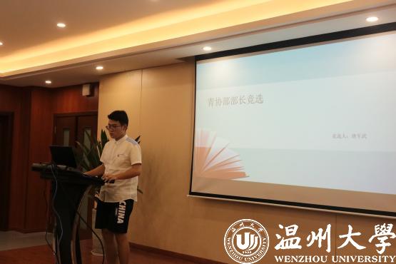 由毛丛余、陈宇、鲍海波、曲铸基、徐隆隆五位主席团候选人依此进行发言。主席团候选人从自我介绍,自己在团学中丰富的工作经历,以及对团学的看法和今后的工作计划展开汇报。