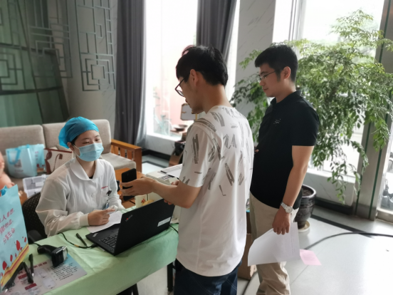 经过网上与线下填表、现场登记、测量血压、医嘱检查、采血等多个环节,最终吴英龙、张毅、张德舟、陈芝向、潘敏辉5位老师献血成功。