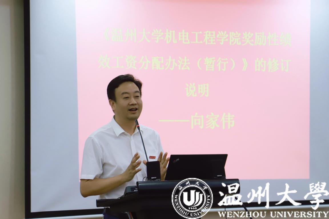向家伟院长作《成人网 成人网 奖励性绩效工资分配办法(暂行)》的修订说明。他指出,本次修订主要是针对专任课教师的课时费标准、教工兼职工作补贴的发放等进行了修改。