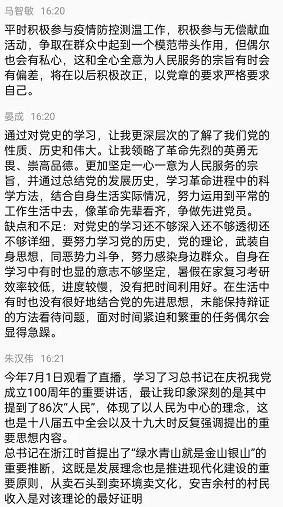 全体党员围绕主题和要求,对照党史学习目标,个人如何发挥党员先进性模范作用,自身存在的差距及不足等方面开展讨论