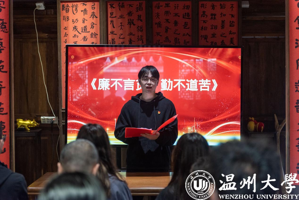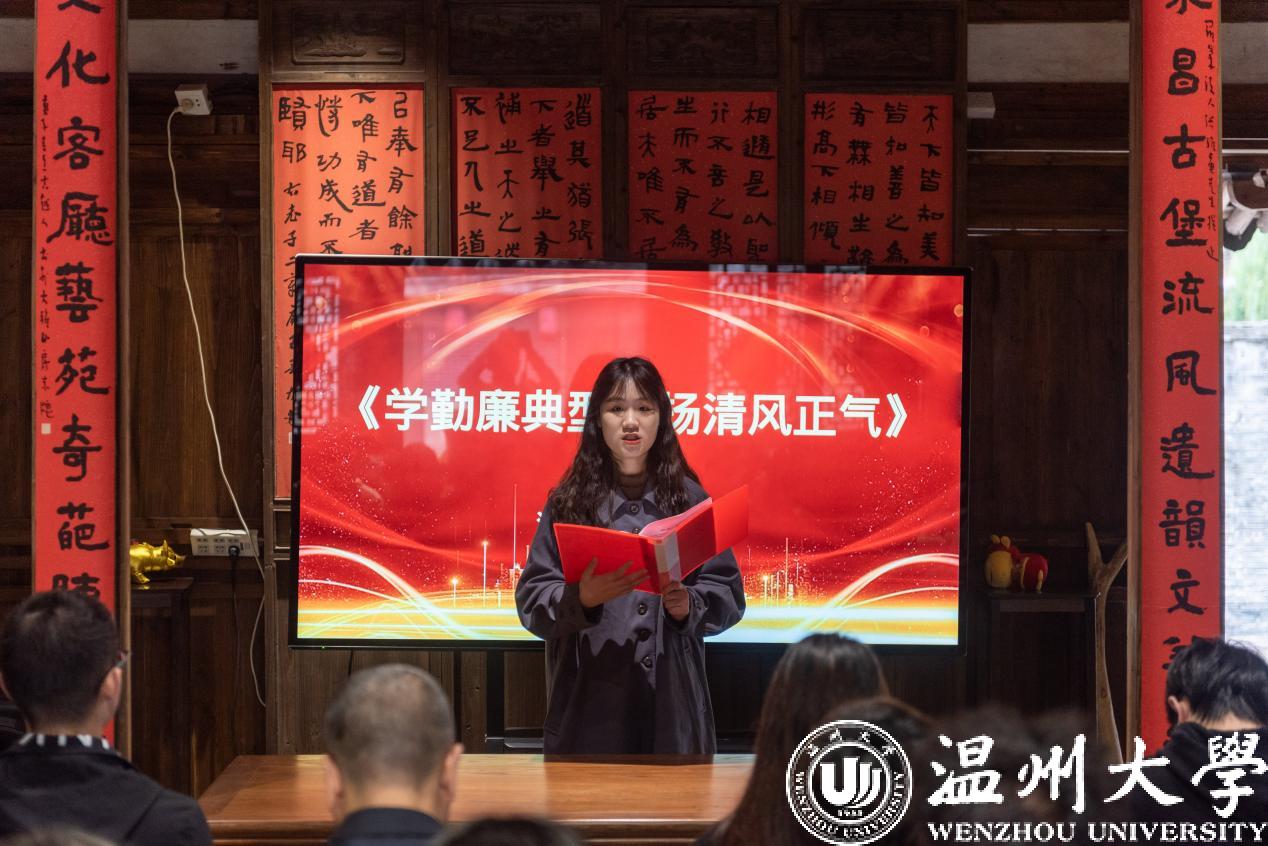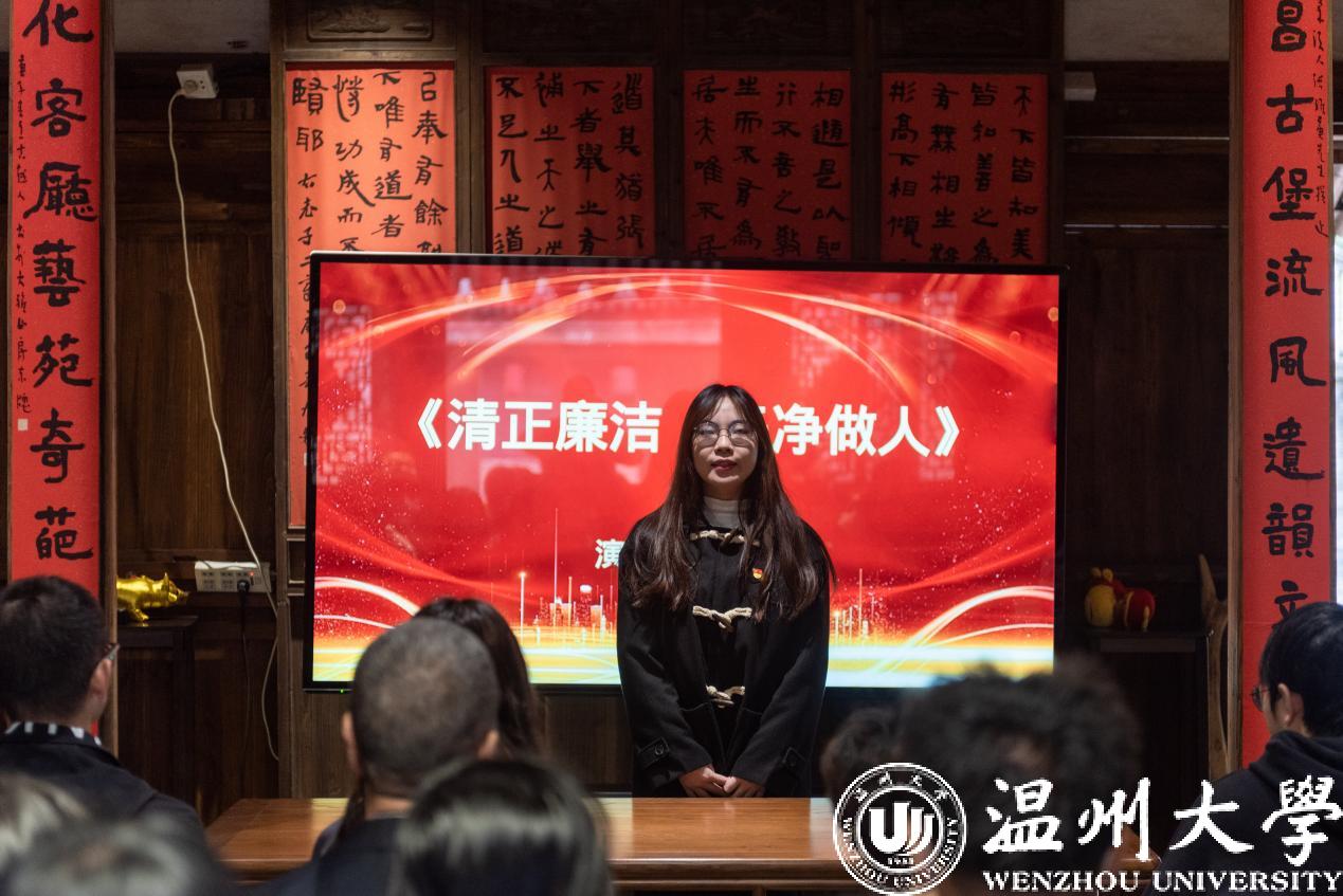 第二党支部黎雯婧同学带来《学勤廉典型,扬清风正气》的演讲,以刘伯温老前辈的故事,告诉大家什么叫“言廉为虚,身廉为标,心廉为本”。让清廉成为爱国之情、强国之志、报国之行的考核标杆,使清风正气蔚然成风。
