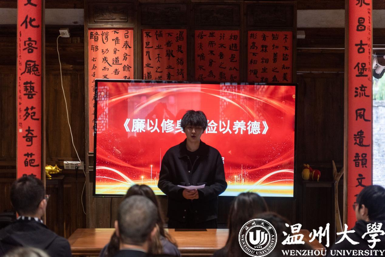 第三党支部魏淳辉同学带来《廉以修身,俭以养德》的演讲,强调“廉洁”早已不只是官吏和圣贤的事情,而是与每个人息息相关。我们应该从小事做起,让清风正气从青年开始,吹向每个角落。